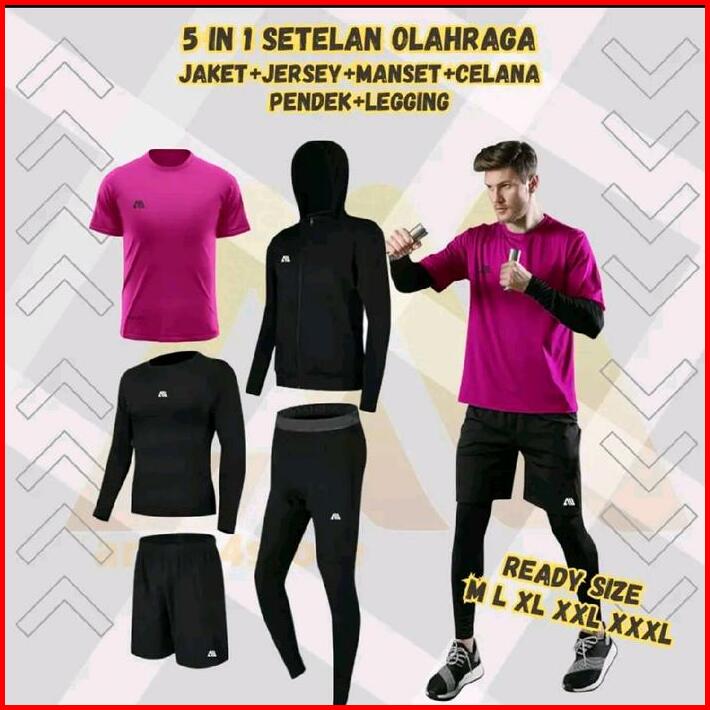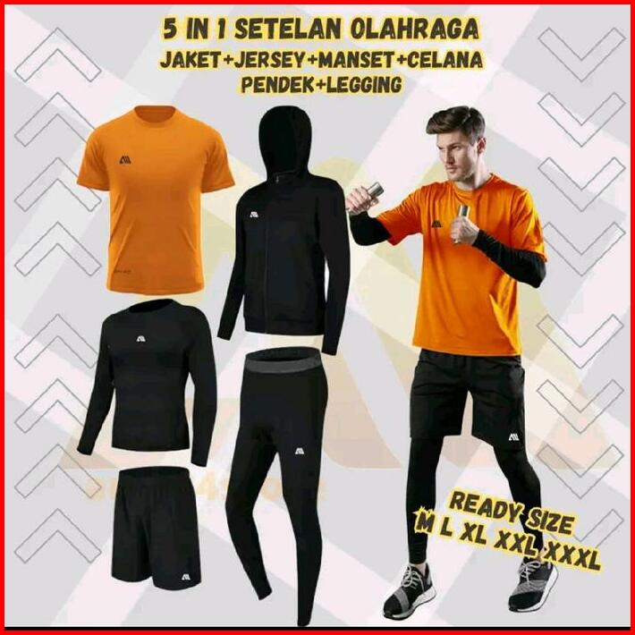 5 In 1 Paket Hemat Stelan Olahraga Jaket Hoodie Outdoor Jersey Sepakbola Jersey Futsal Sport