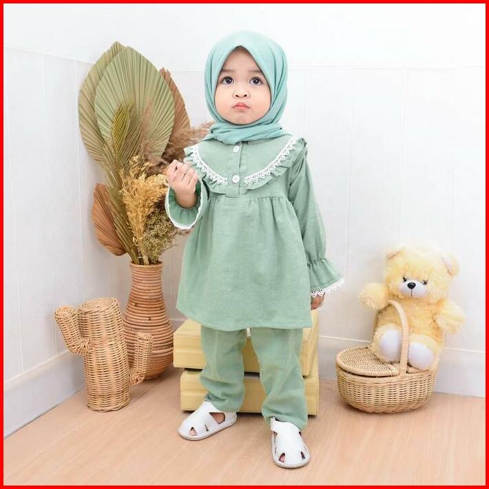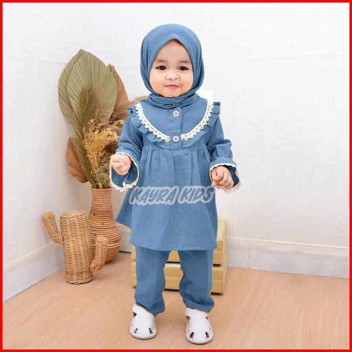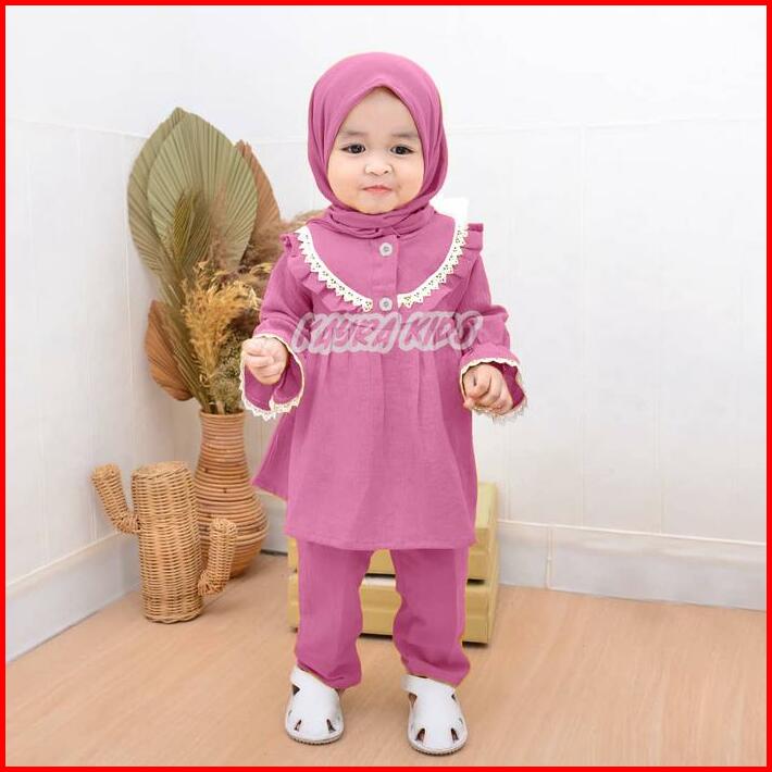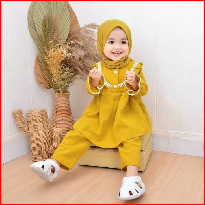 Baju Setelan Anak Perempuan Muslim 0-3 Tahun Tanpa Hijab Dress Celana Panjang Bahan Lembut Dan Adem
