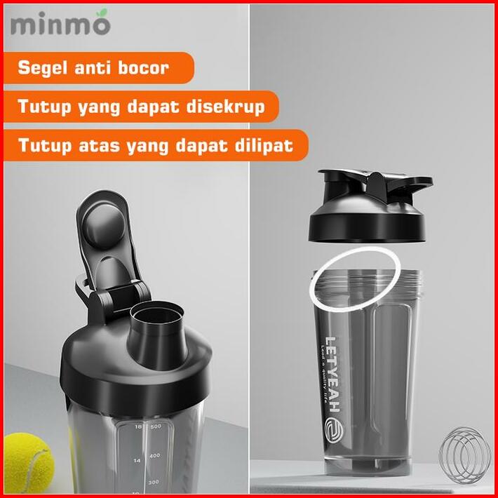 Minmo 600 Ml Shake Botol Ada Bola Pengaduk Botol Minum Plastik Shaker Botol Minum Flip Bpa Free Gym Fitness Tumbler Boto