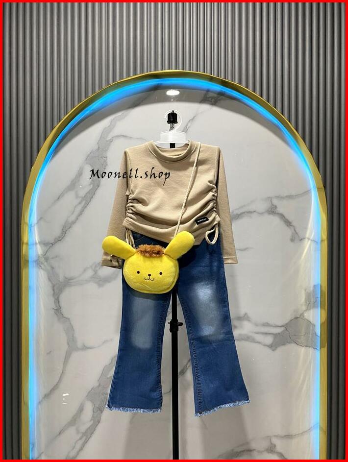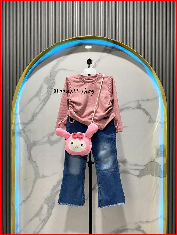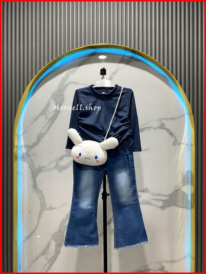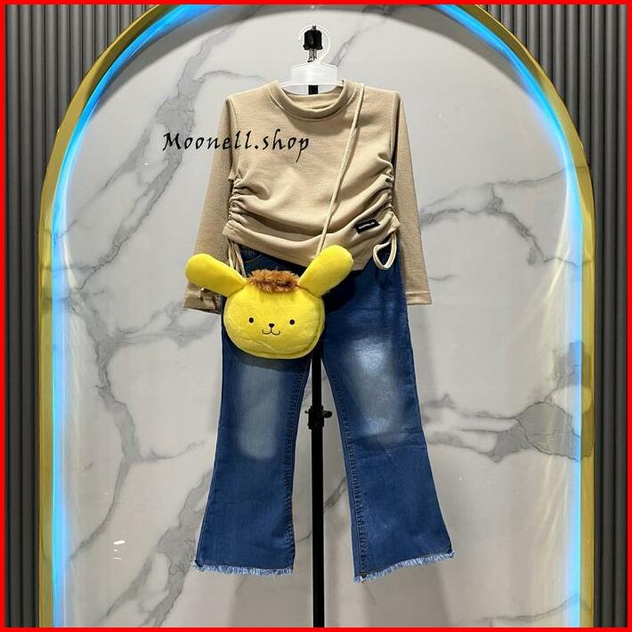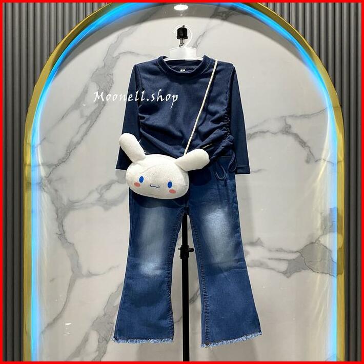 Setelan Jeans Anak Perempuan Celana Cutbray Jeans Baju Croptop Anak Serut Usia 1-12 Tahun