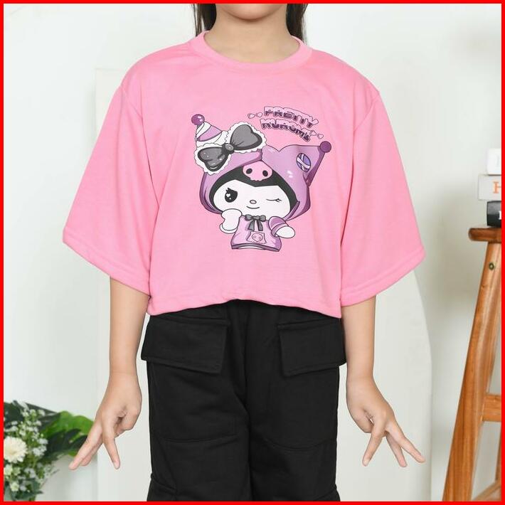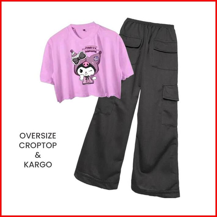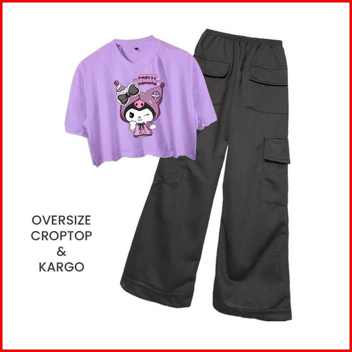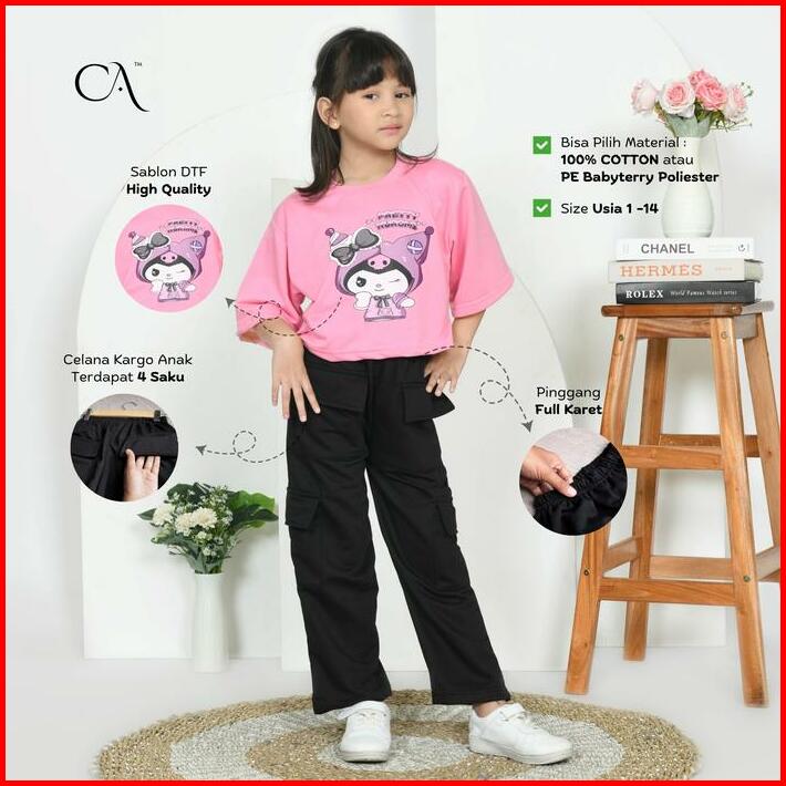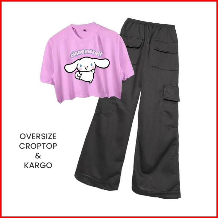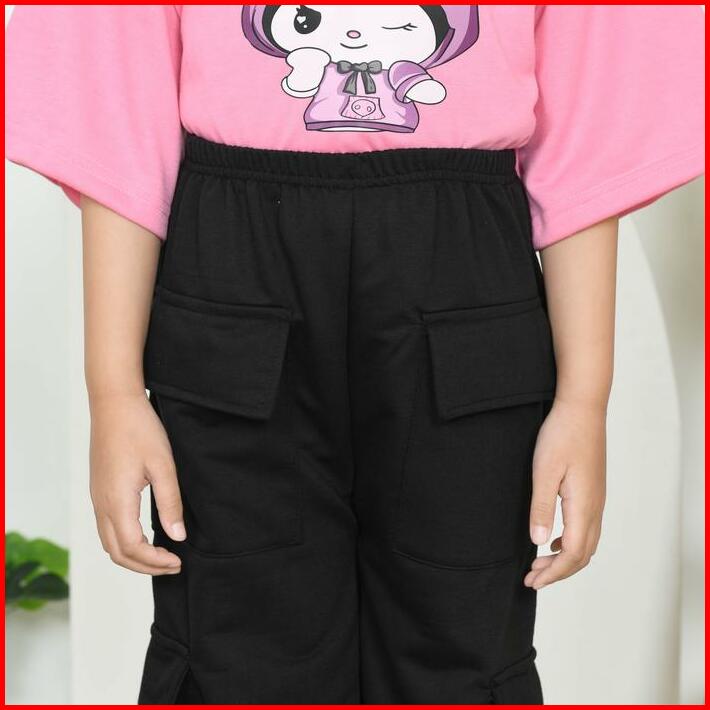 Setelan Crop Top Celana Kargo Anak Perempuan Karakter Kuromi Cinnamoroll Viral Baju Set Cewek 6 8 10 12 Tahun