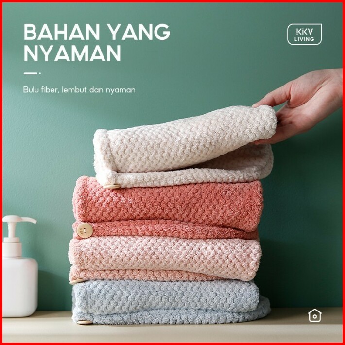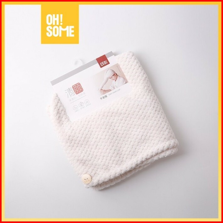 Ohsome Ceo Handuk Kepala Pengering Rambut Turban Keramas Dengan Kancing
