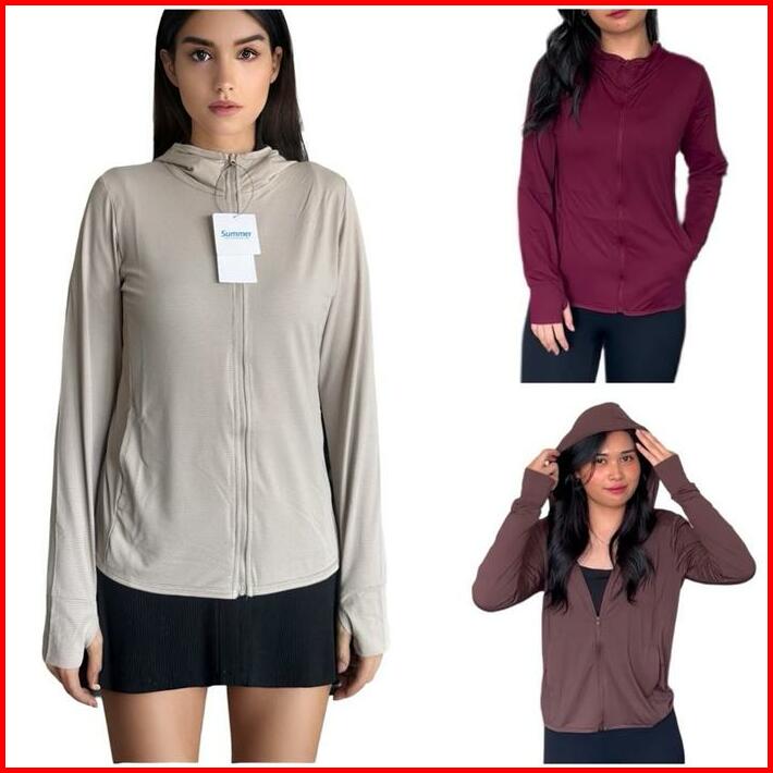 Minne Jaket Olahraga Unisex Airism Dengan Hoodie Dan Kantong Spf 50
