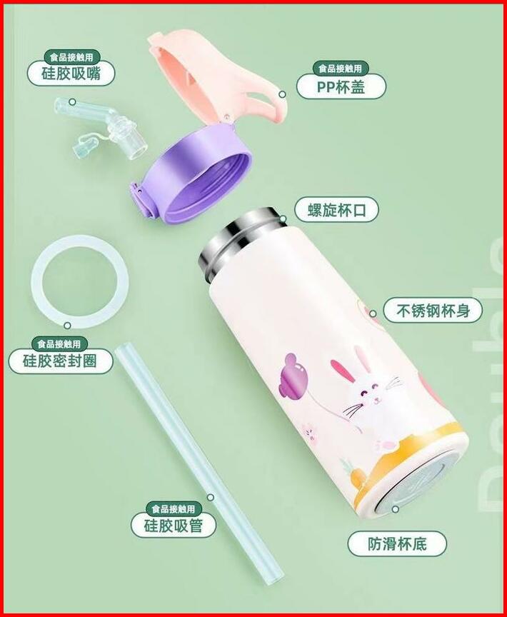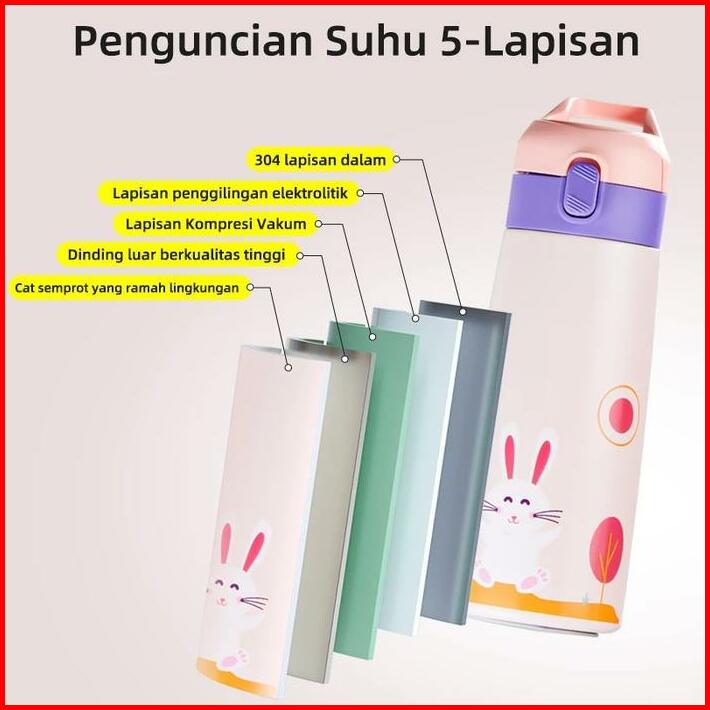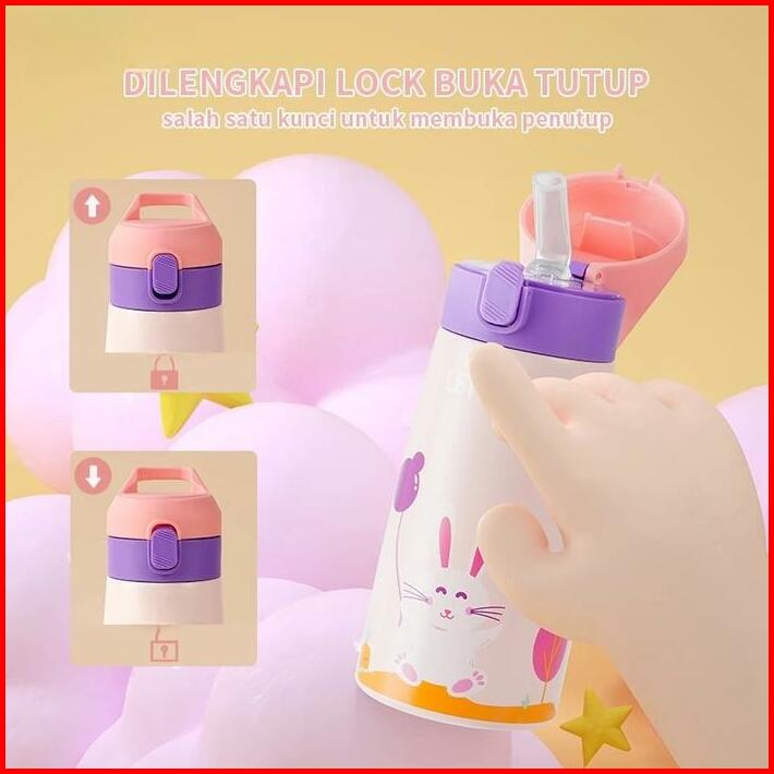 Tumbler Termos Botol Minum Sedotan Vacuum Cup Hot Cool 350 Ml Stainless Steel 304 Termos Air Anak Termos Tahan Panas Din