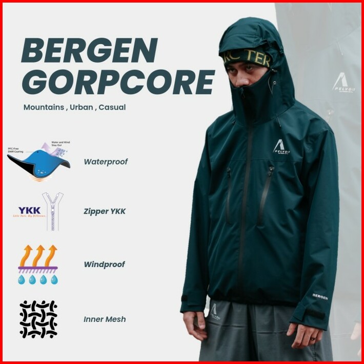 Jaket Gunung Gorpcore Pelvoux Bergen Waterproof Unisex