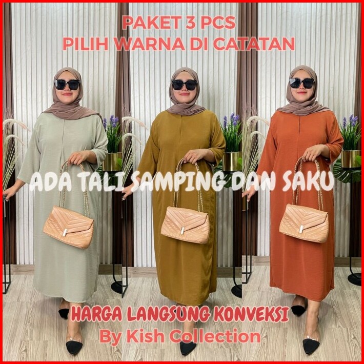 Bundling 3pcs Gamis Daster Crinkle Airflow Lengan 3 4