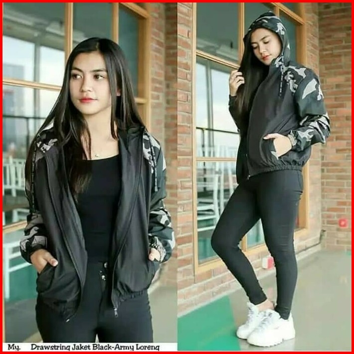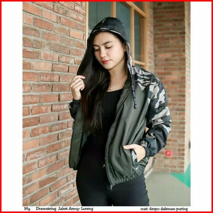 Jaket Parasut Wanita Jaket Olahraga Cewek Parasut Loreng Army Camo