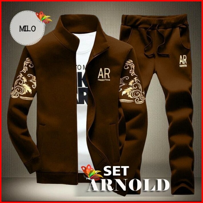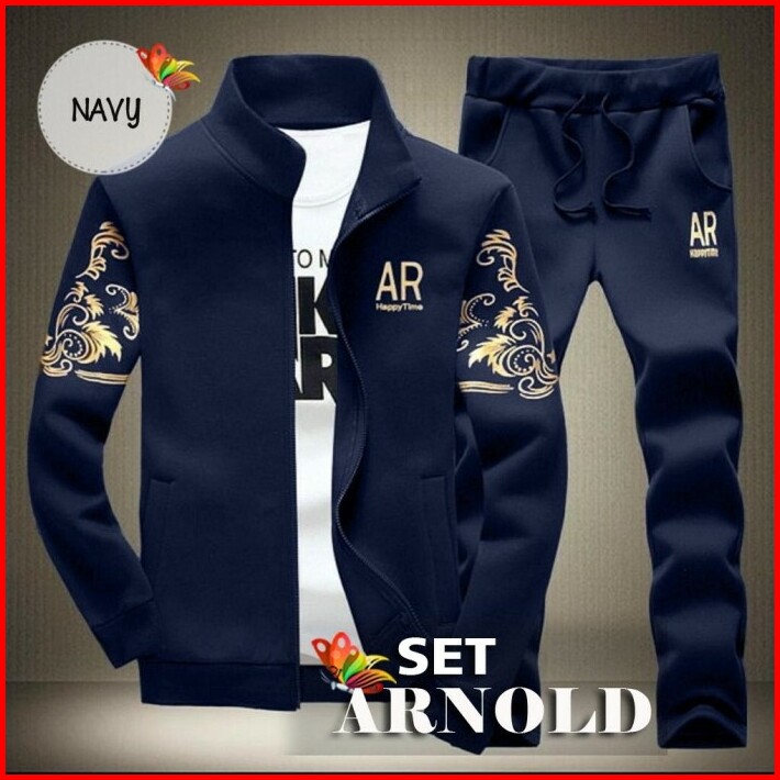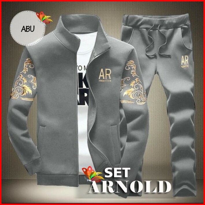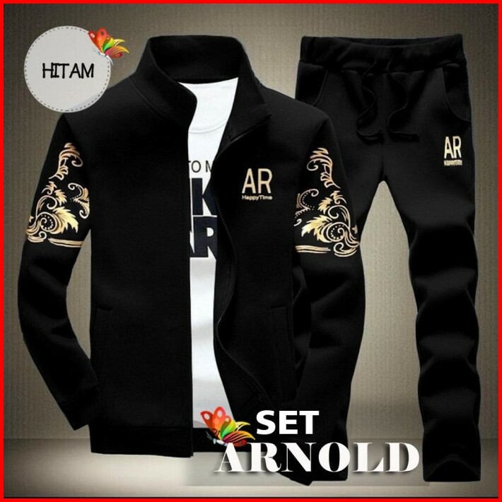 Set Arnold Fis Setelan Olahraga Pria Setelan Training Jaket Jogging