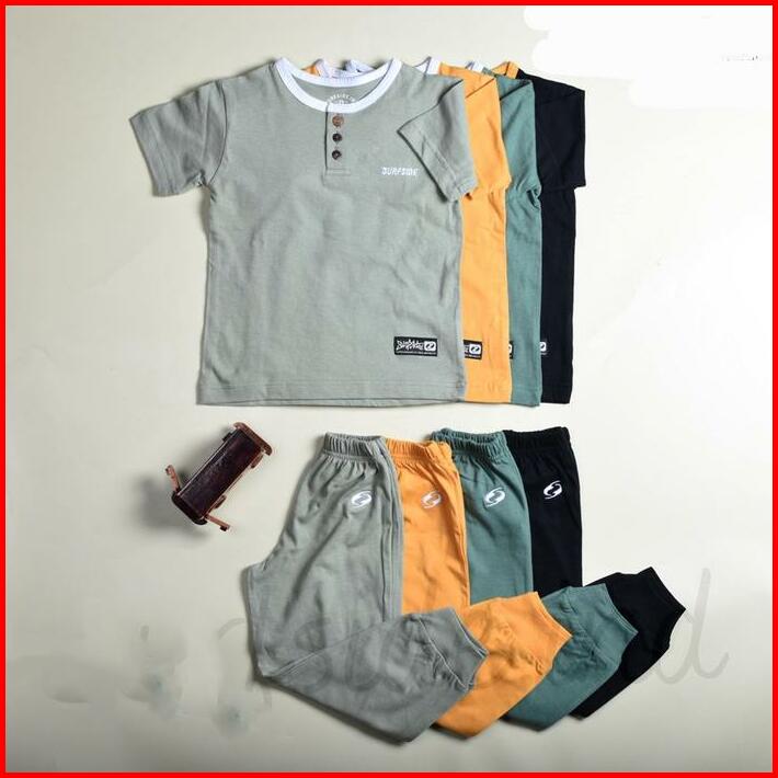 Setelan Kaos Baju Anak Laki-laki Polos Kancing 6 Bulan