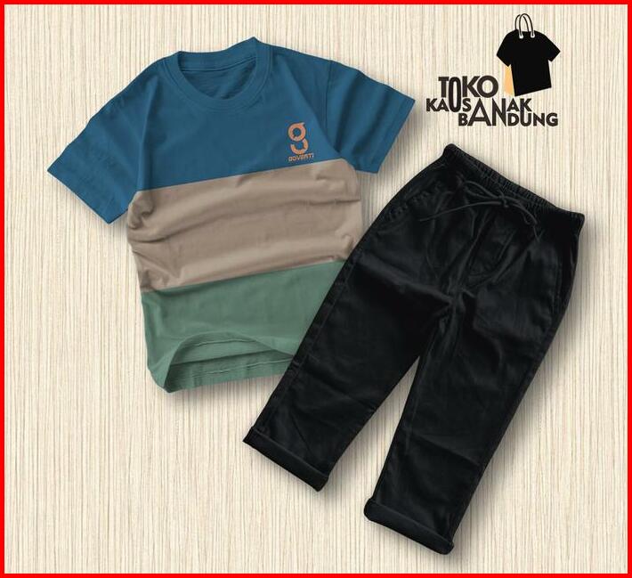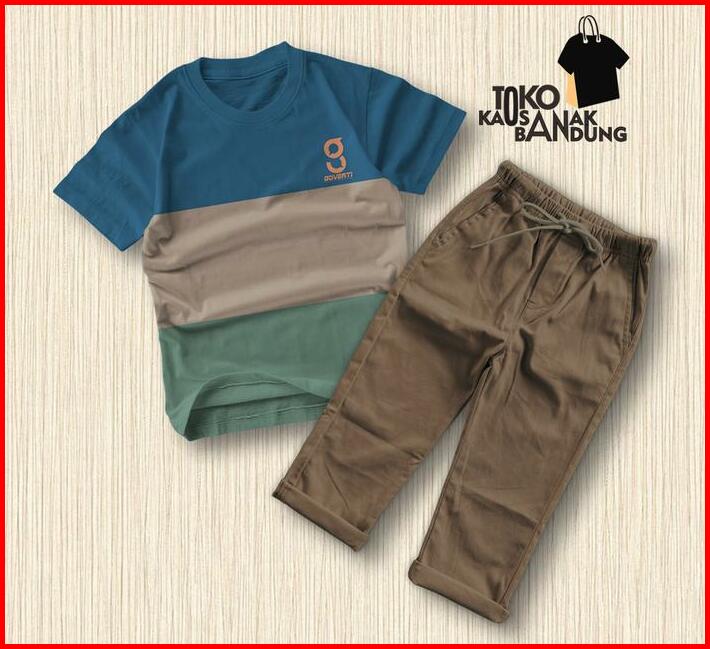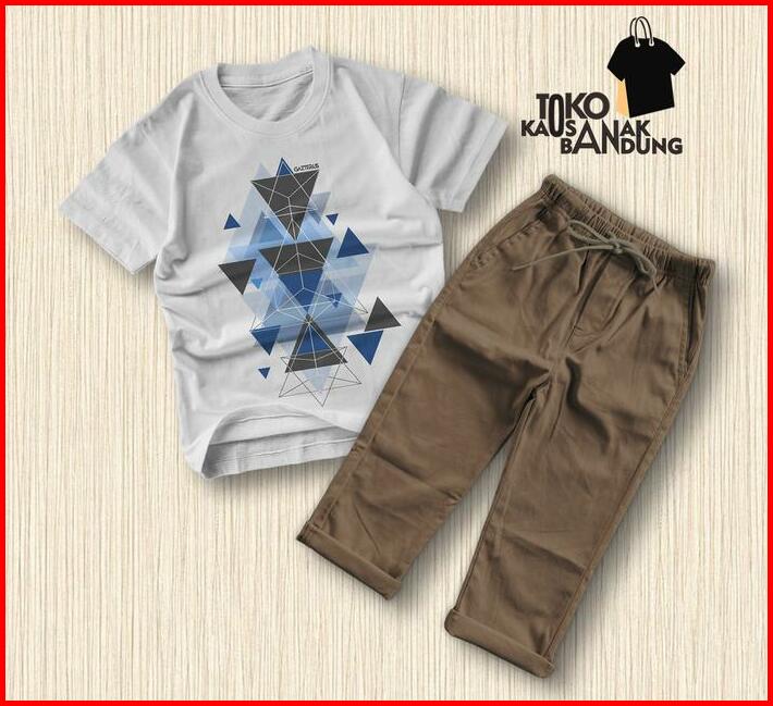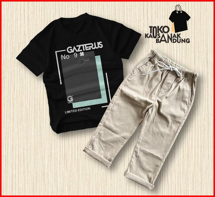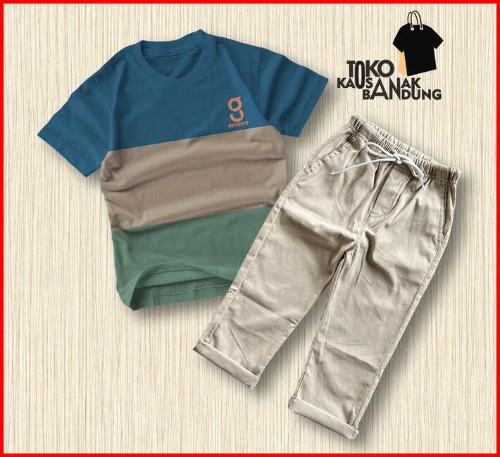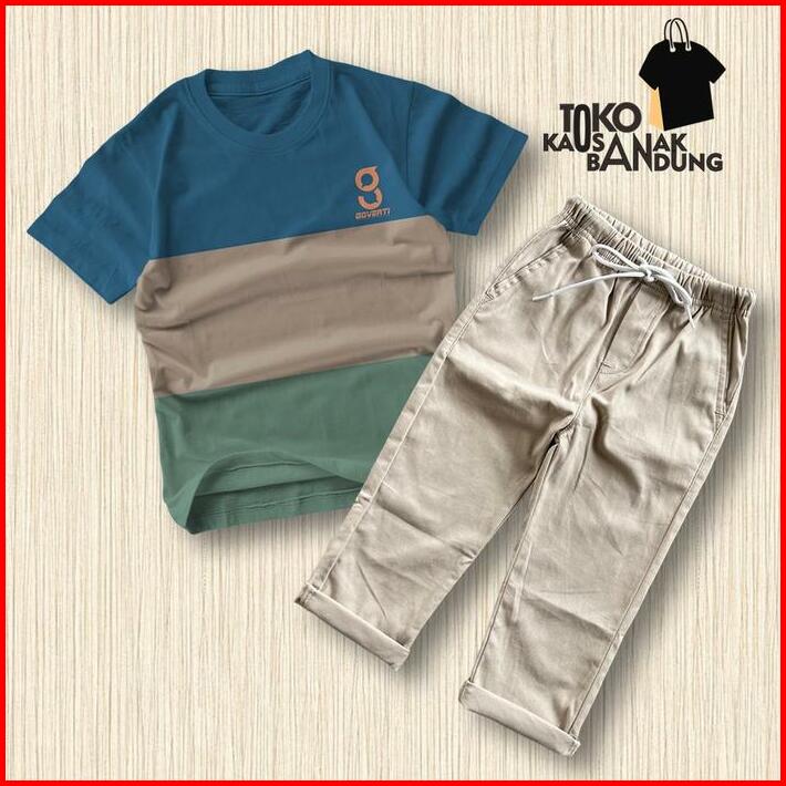 Setelan Anak Celana Chino Panjang Dan Baju Kaos Distro Kombinasi Anak Laki-laki Usia 4-12 Tahun Fashion Terbaru