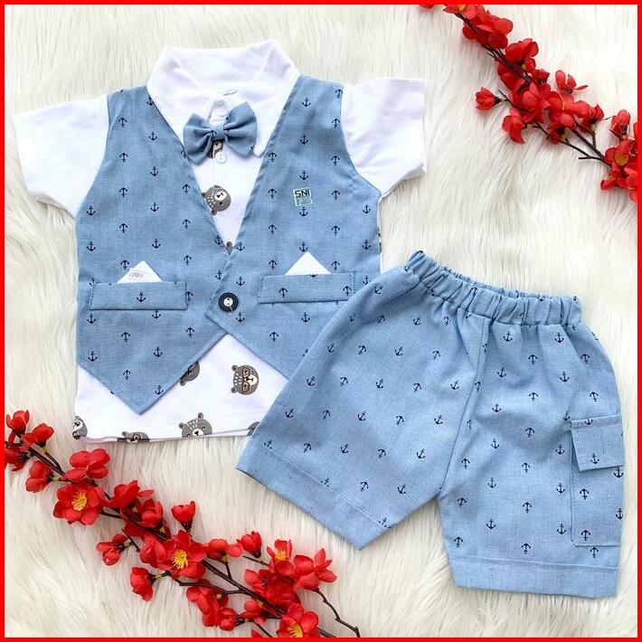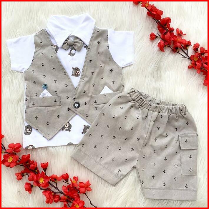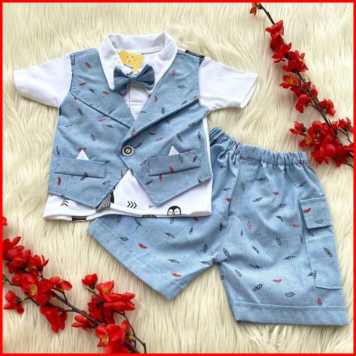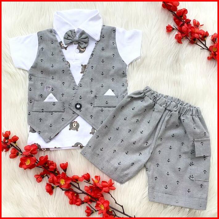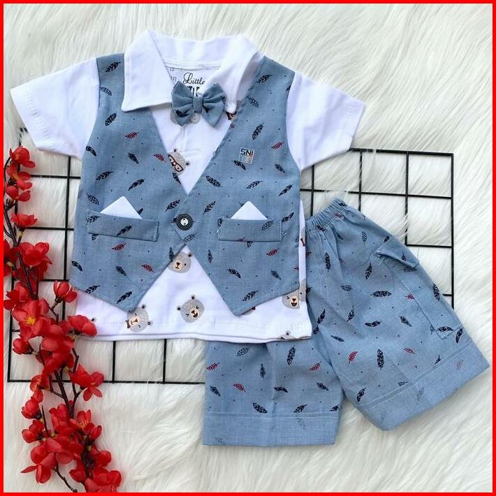 Baju Setelan Kemeja 0-18 Bulan Rompi Sambung Celana Pesta Kondangan Fashion Anak Bayi Cowok Laki Laki Murah -jos