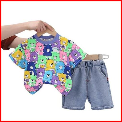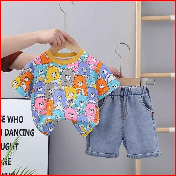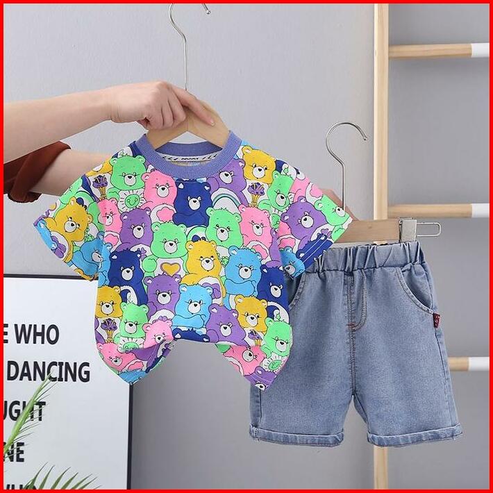 Mamado Setelan Baju Anak Perempuan Beruang Full Print One Set Kids Kaos Beruang Umur 1 -5 Tahun Bunda Bahan Katun Parsel