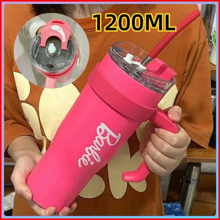 Cod1.2l Tumbler Stainless Gagang 1200ml Barbie 304 Botol Minum Stainless Steel 1.2 Liter Double-layer Stainless Steel Ca