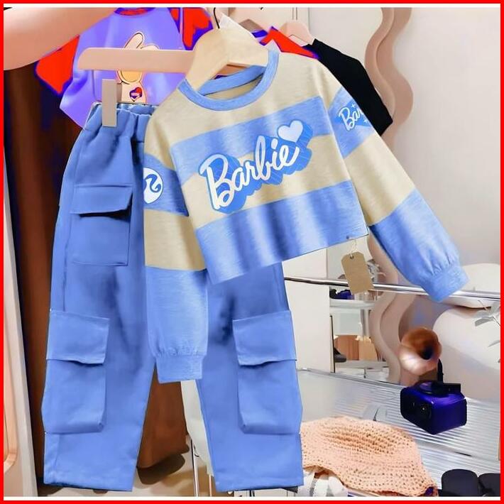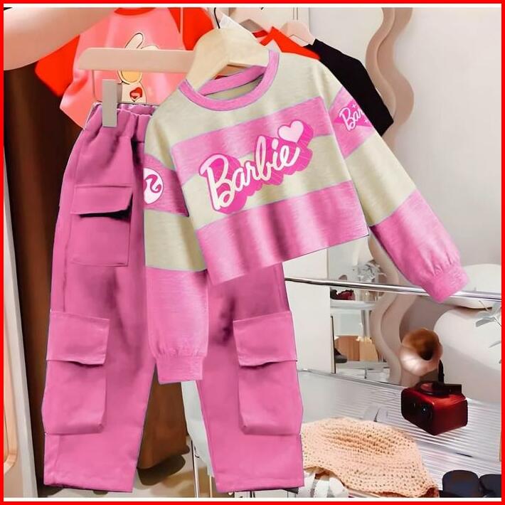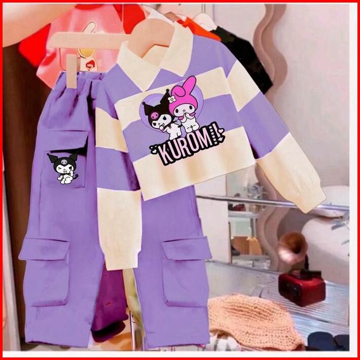 Setelan Sweater Dan Celana Kargo Anak Perempuan Kuromi Model Strip Terbaru