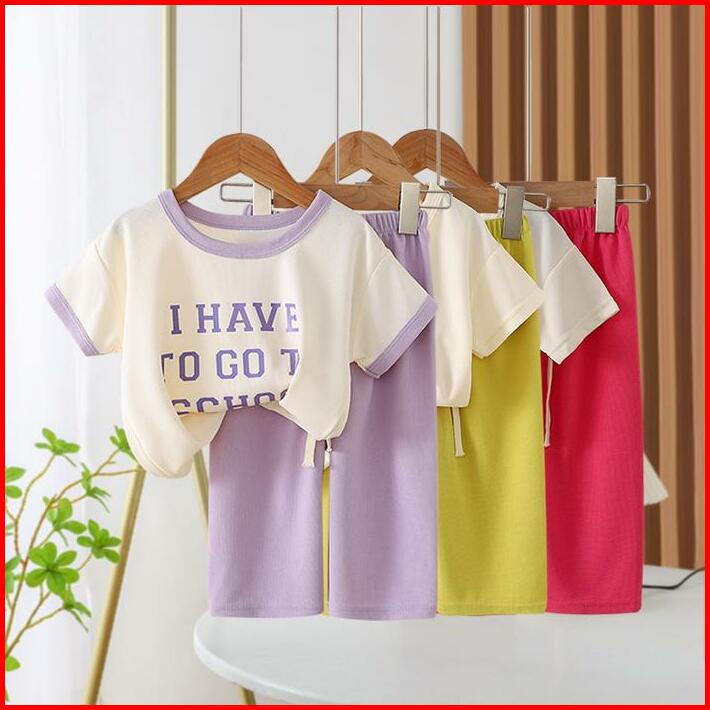 Setelan Santai Anak Perempuan Lengan Pendek Baju Jalan