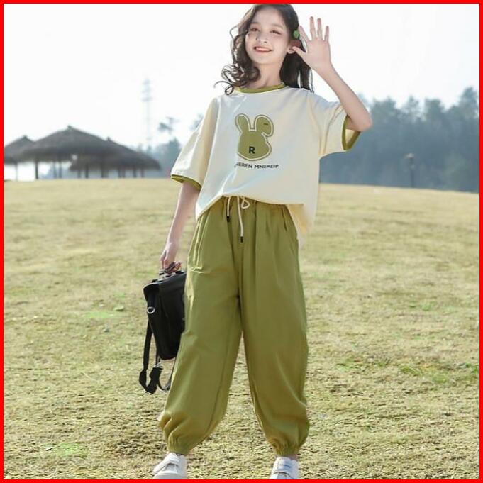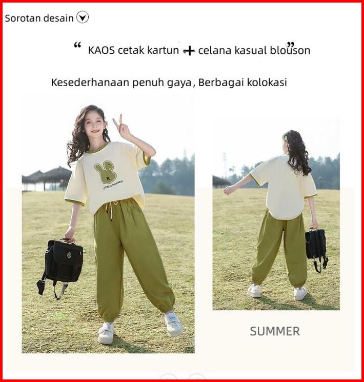 Baju Setelan Anak Cewe Bahan Katun Pakaian Anak Perempuan Motif Kasual 3-15th Celana Set Fashion