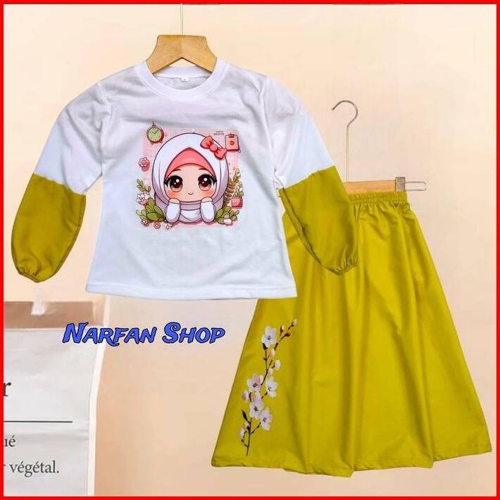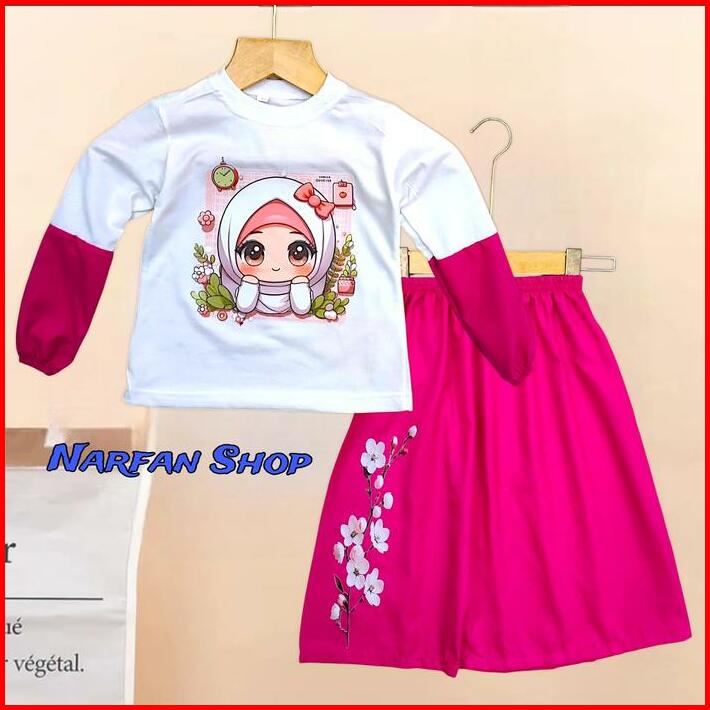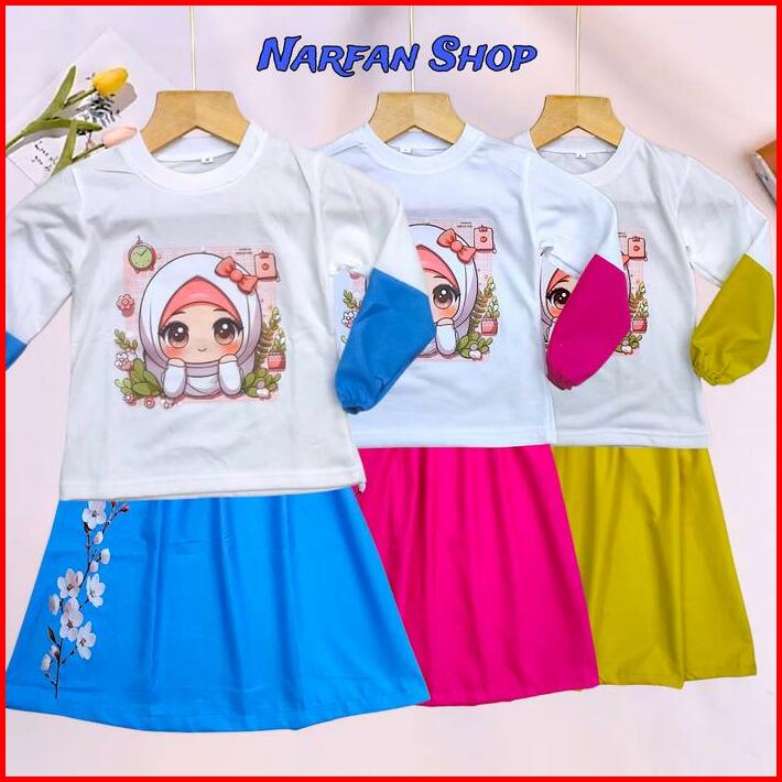 Setelan Rok Dan Baju Anak Perempuan Bahan Cringcel Buat Usia 3-12 Tahun