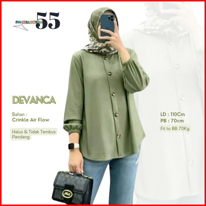 Kemeja Wanita Polos Devanca Blouse Kerja Crinkle Air Flow Ld 110