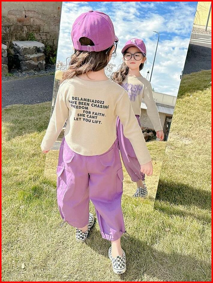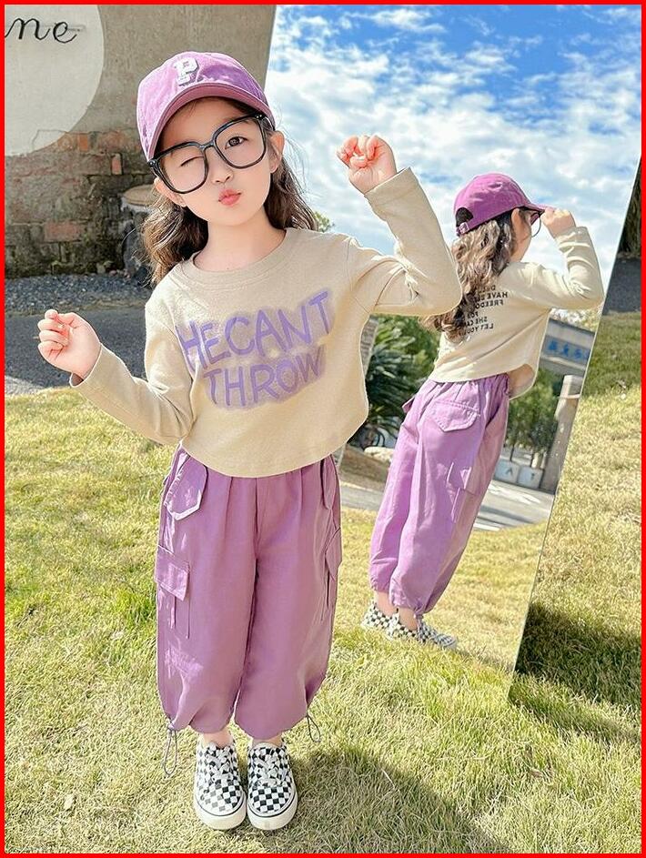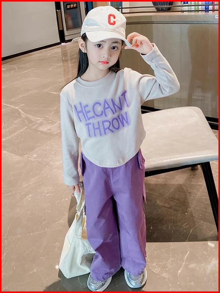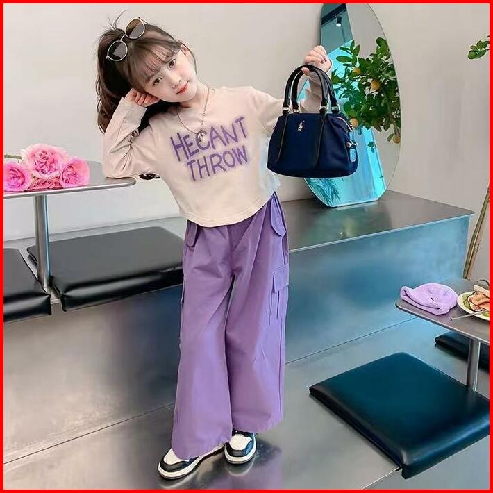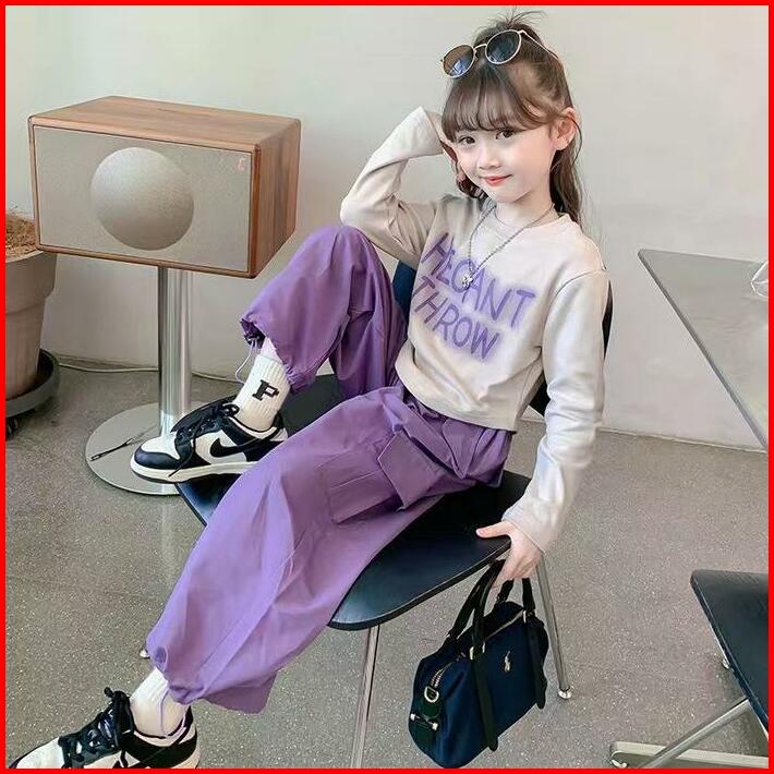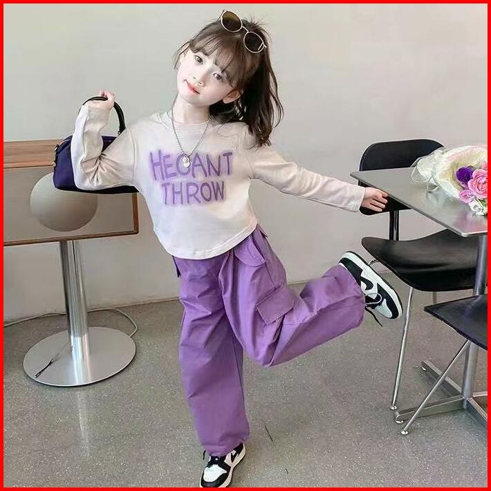 Terbaru Setelan Anak Perempuan Set Cargo Atasan Lengan Panjang Celana Panjang Warna Ungu Baju Bagus Setelan Cargo Fashio