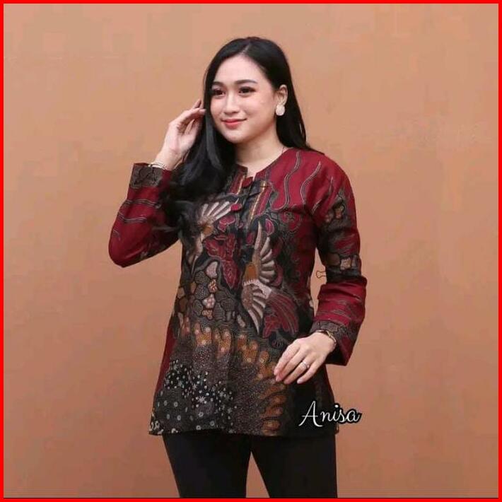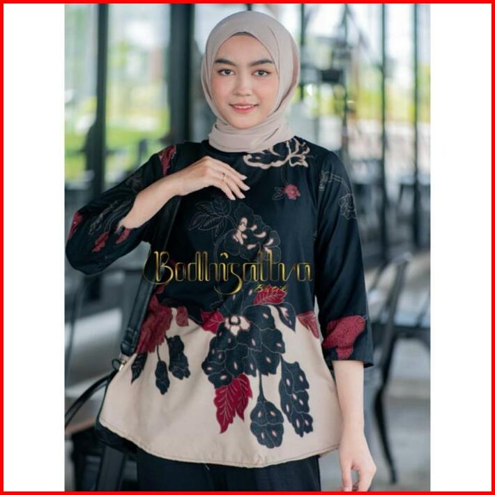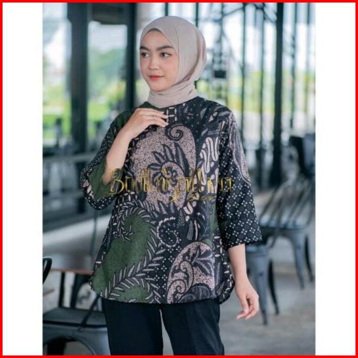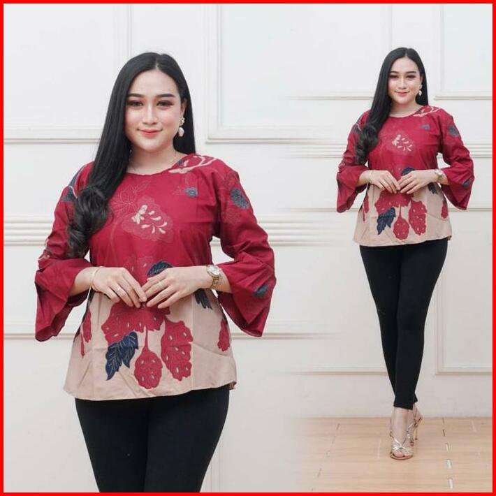 Atasan Blouse Batik Wanita Kerja Kantor- Motif Jumbo M L Xl Xxl 3xl 4xl 5xl - Blouse Batik Wanita- Model Tali Samping Da