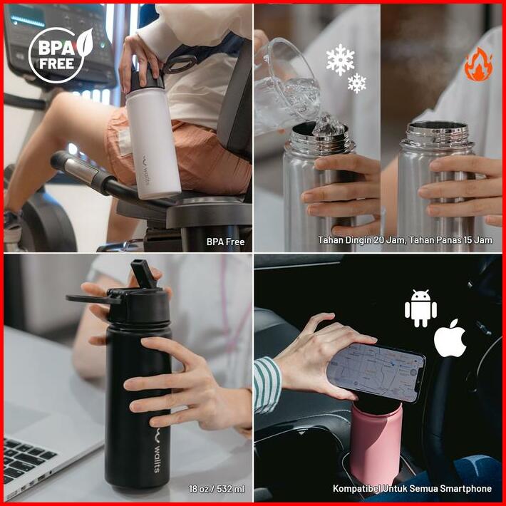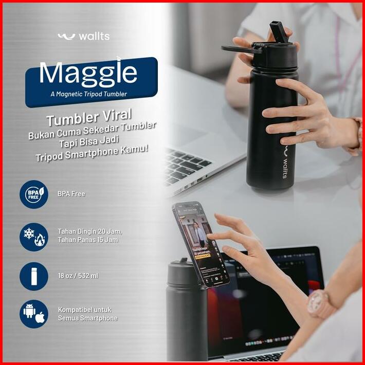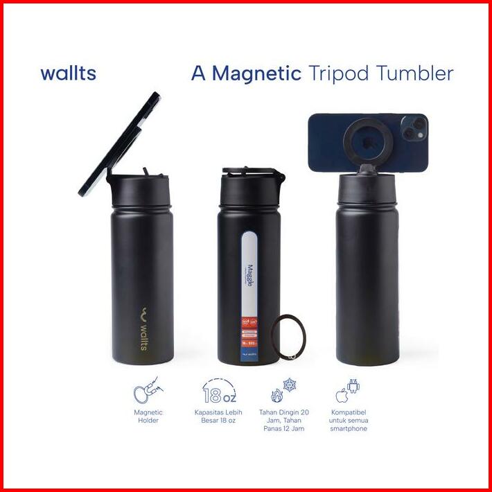 Wallts Maggie Botol Minum Tumbler Stainless Steel Tripod Magsafe Phone Holder 532ml Vacuum