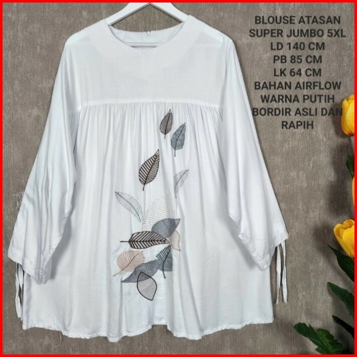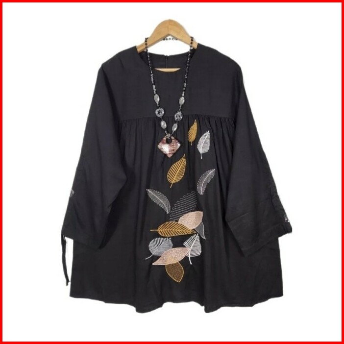 Blouse Bordir Hitam Wanita Super Jumbo Ld. 140 Atasan Lengan Panjang