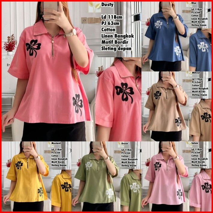 Blouse Atasan Jumbo Rev Katun Linen Imp Ld115 Fit To 2l