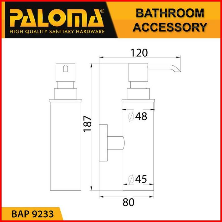 Paloma Bap 9233 Dispenser Sabun Shampoo Cair Tempat Botol Pump Dinding