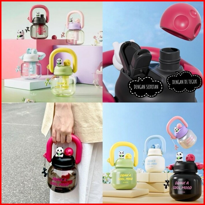 Snager Botol Air Minum 2 Sisi Anak Bulat Panda Tritan Dua Cara Minum Linlin Aesthetic Botol Minum Anak Lucu