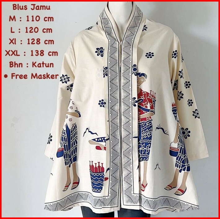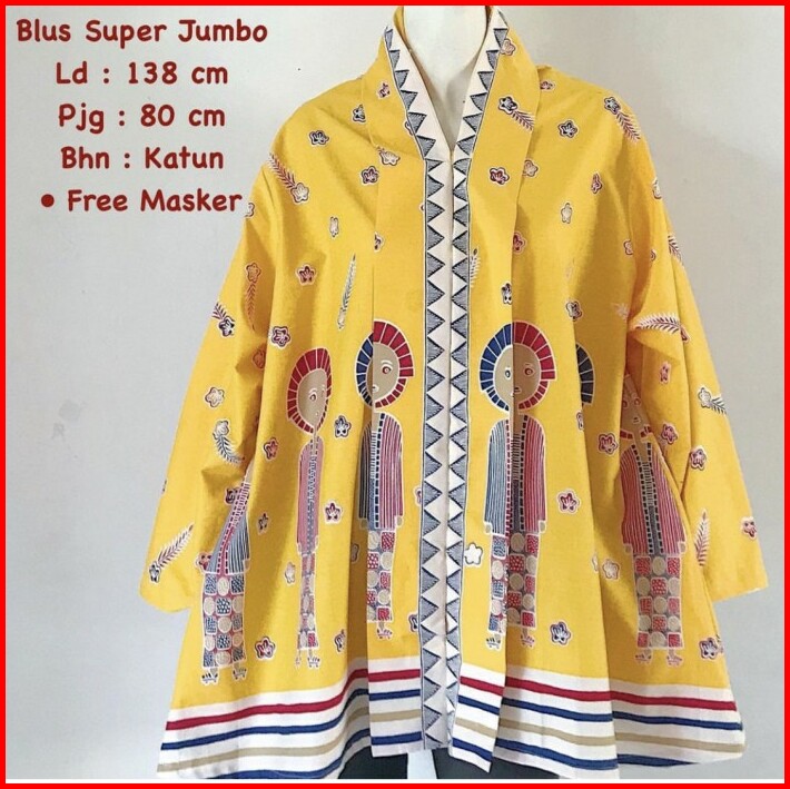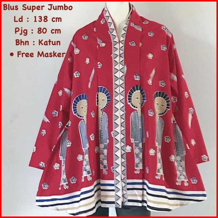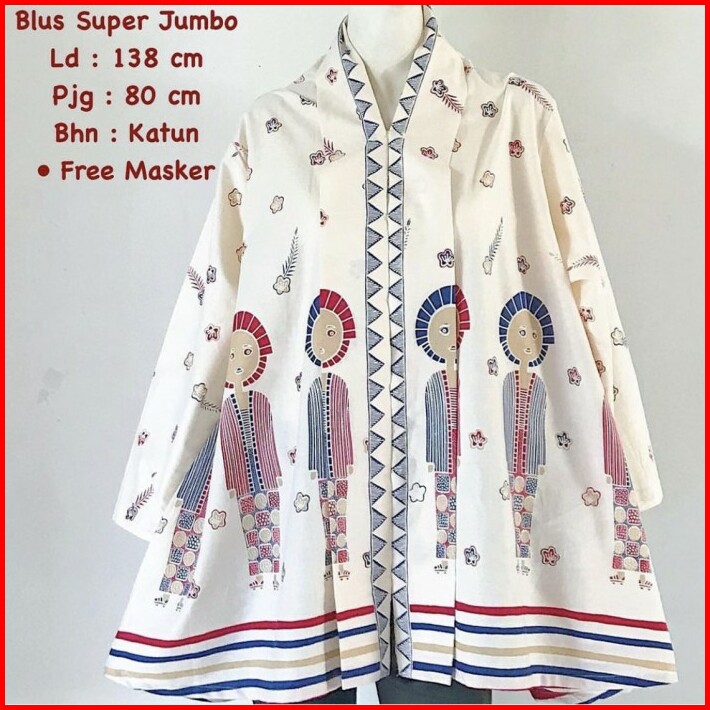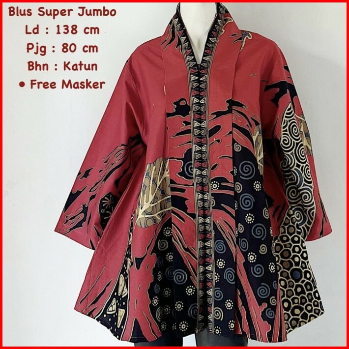 Blouse Batik Super Jumbo Ld 138cm Wanita Kerja Modern Lengan Panjang