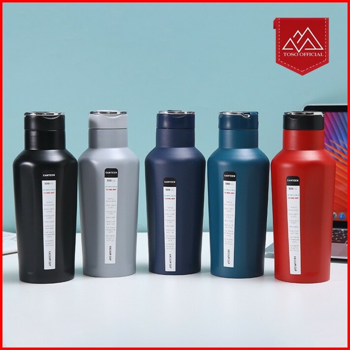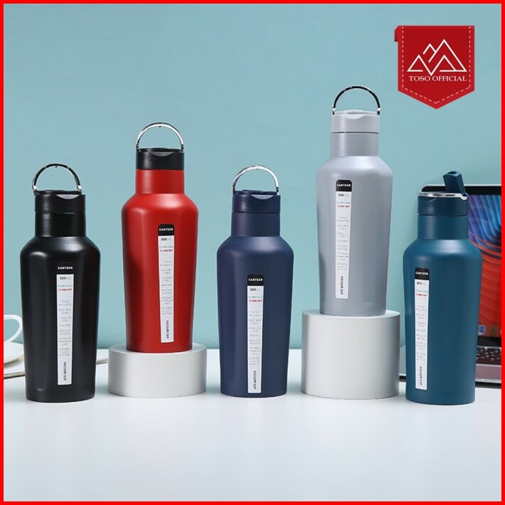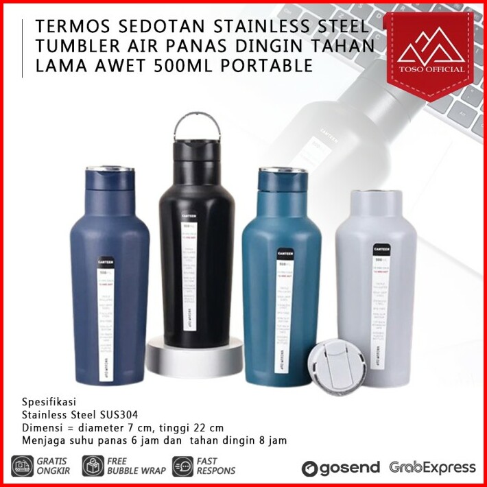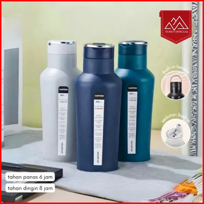 Toso Tumbler Termos Canteen Stainless Steel 4 Sisi Datar Botol Sedotan