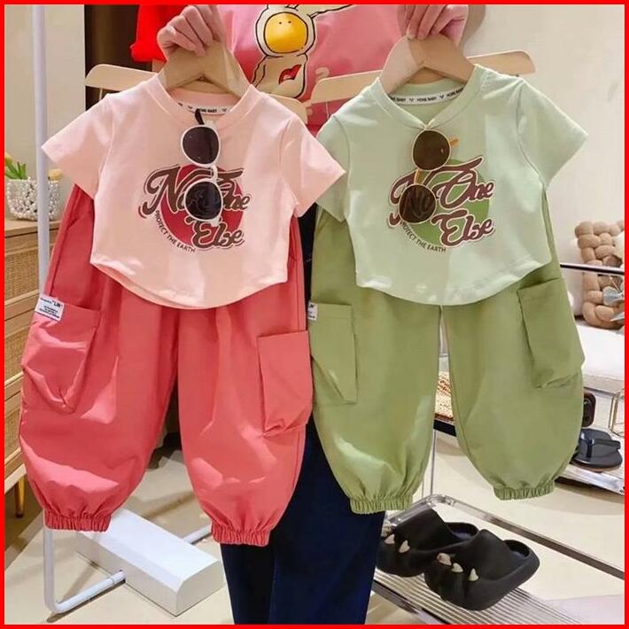 Junecollections Setelan Set Anak Perempuan Tshirt Dan Celana Panjang Cargo 601 Baju Cewek Fashion