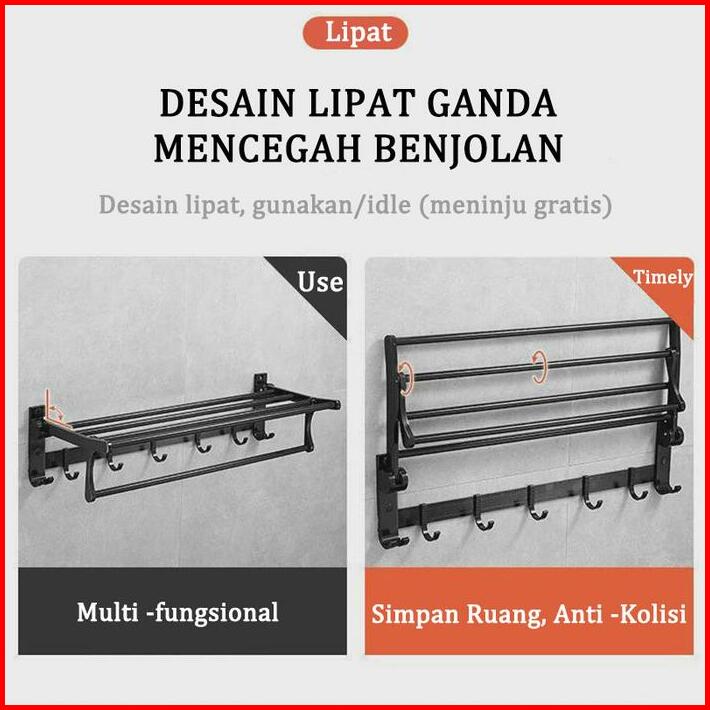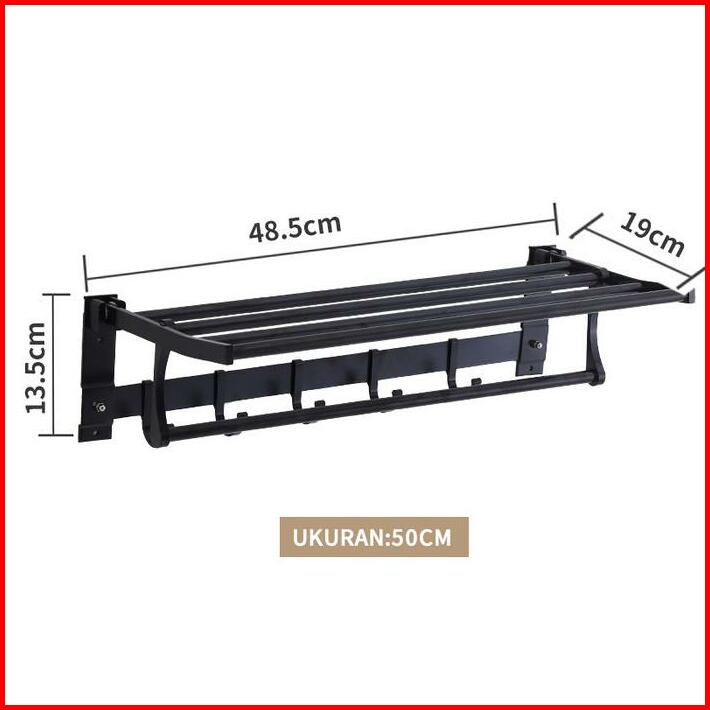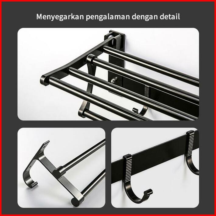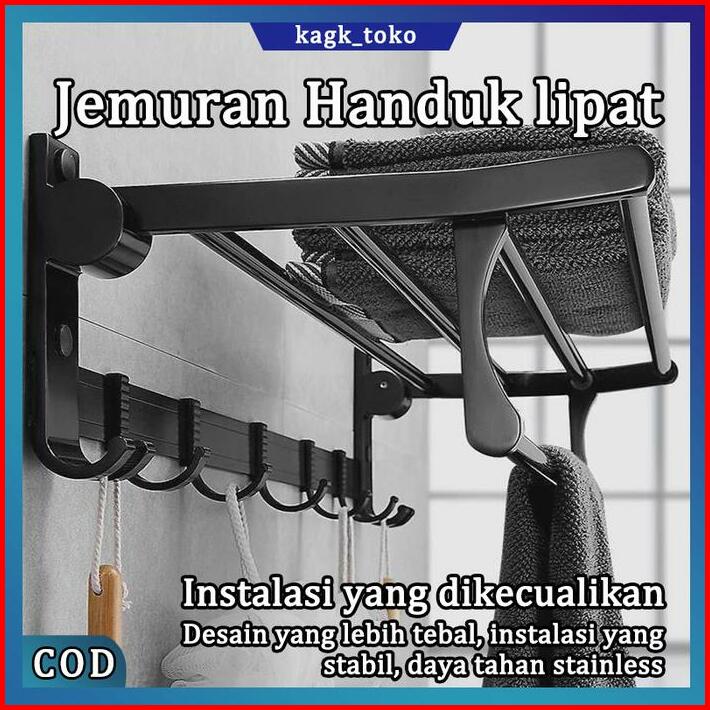 Kagk Gantungan Handuk Lipat Aluminium Rak Dinding Kamar Mandi Mandi Rak Multifungsi Rak Handuk Besi Hitam Minimalis