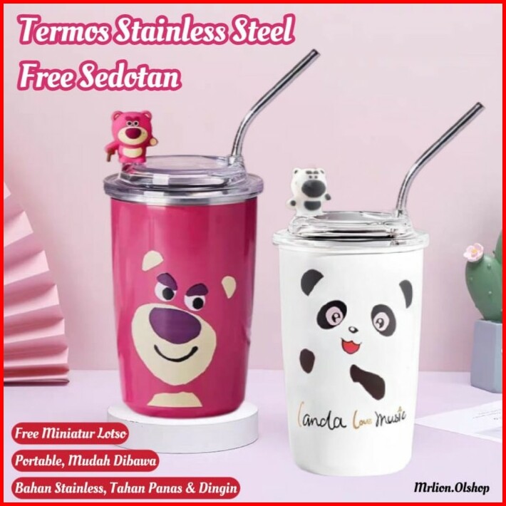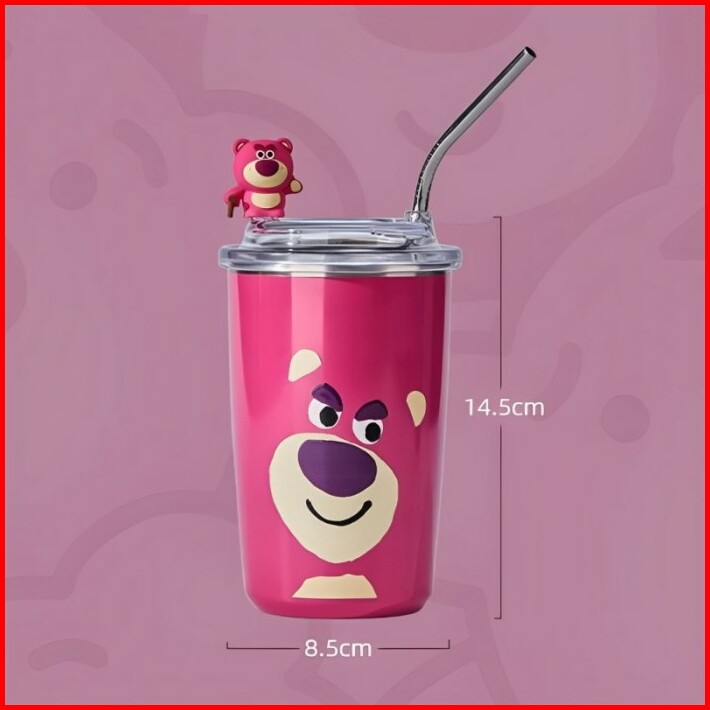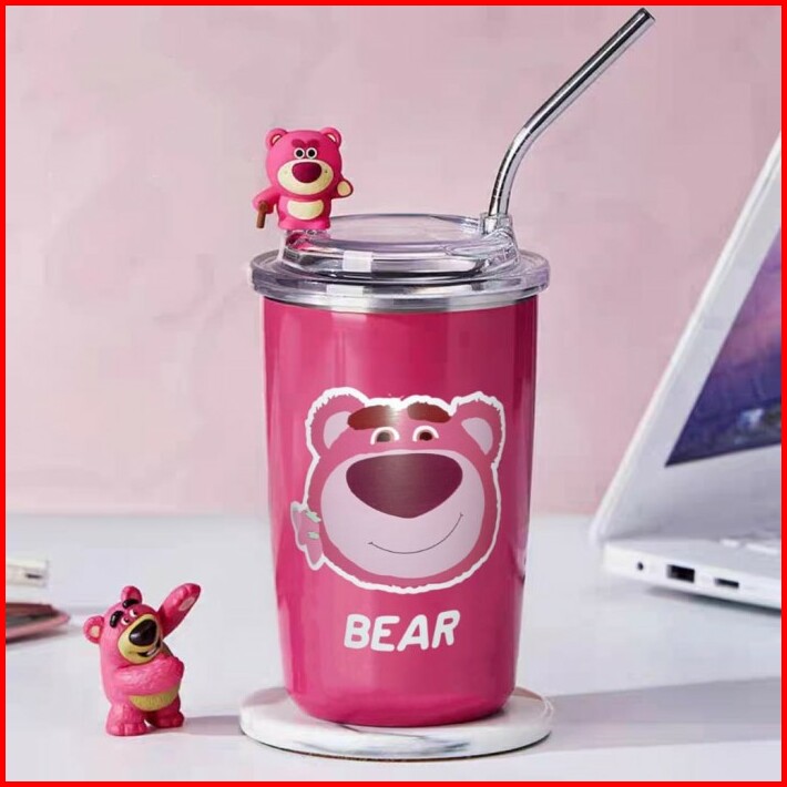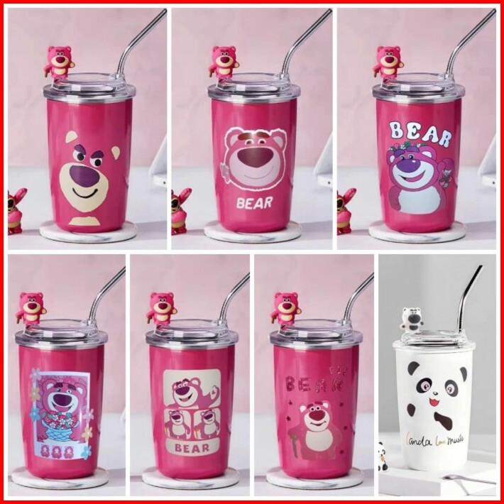 Tumbler Lotso Botol Dengan Sedotan Botol Lucu Strawberry Bear Termos