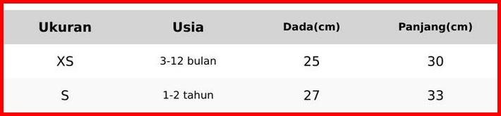 XS ( 3-12 BULAN ), S ( 1-2 TAHUN)