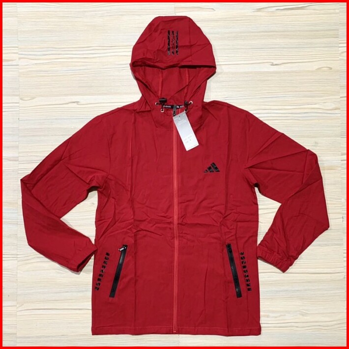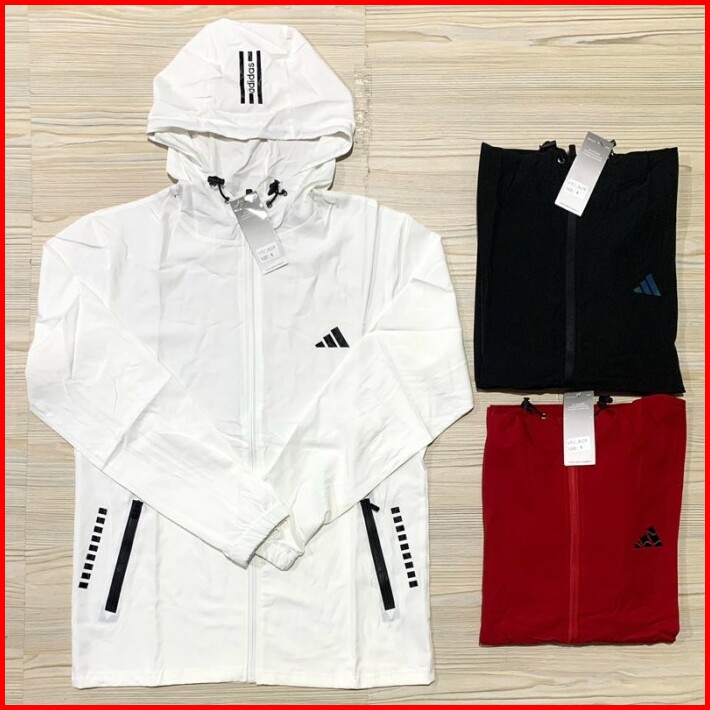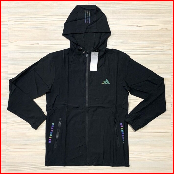 Jaket Micro Parasut Kupluk Ads Lari Run Model Outdoor Lengan Panjang Import Premium Running Olahraga Hoodie