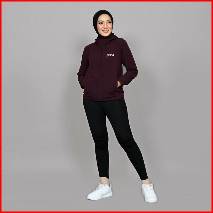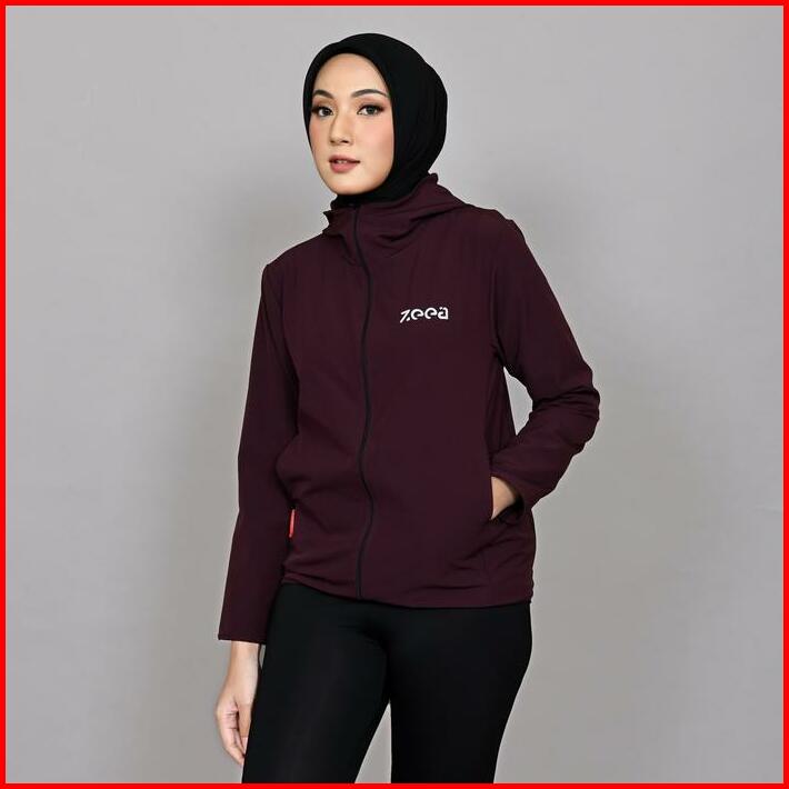 Zeea Jaket Olahraga Sport Wanita Anti Air Multifungsi Windroof Jaket Lari Dalilah Maroon