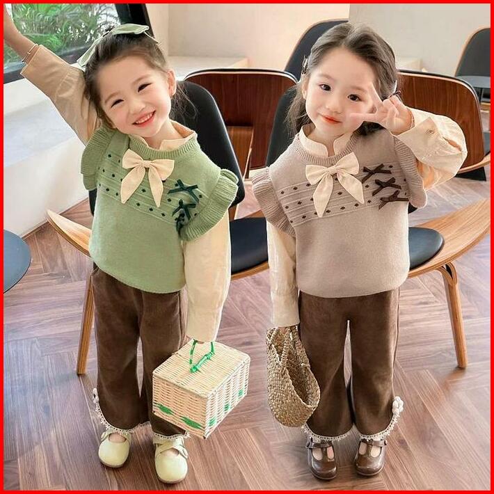Angenius Setelan Anak Perempuan Lengan Panjang Dengan Bahan Baby Corduroy Katun Premium Style Anak Kekinian Baju Lucu Fa