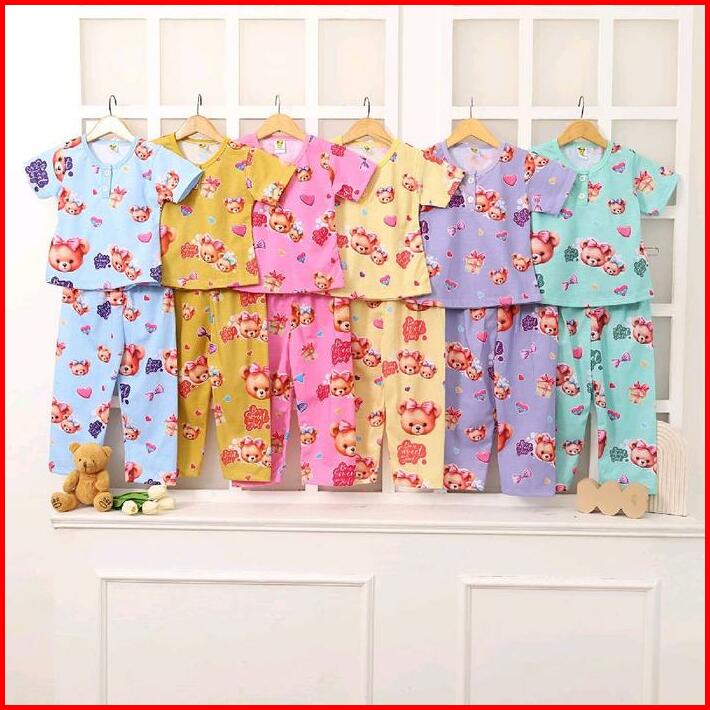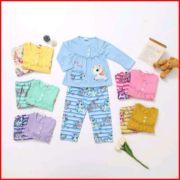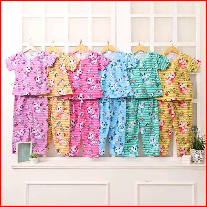 Khusus Paket Bundle 3 Set Baju Tidur Anak Perempuan Usia 1-7 Tahun Vns203 Premium Motif Random Setelan Bayi Balita Fashi