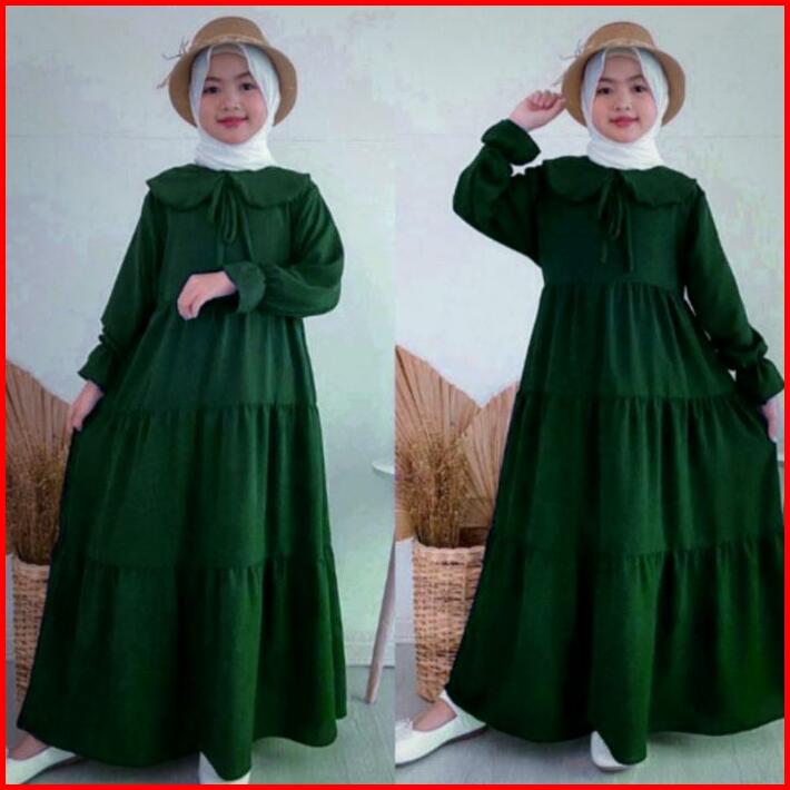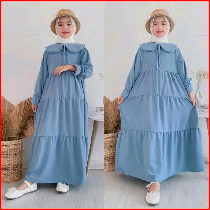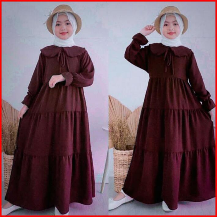 Gamis Anak Perempuan Polos Midi Dress Anak Tanggung Usia 6-13 Tahun Bahan Rayon Premium Baju Muslim Nyaman Kerah Pita Le