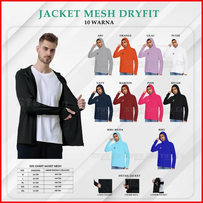 Jaket Uv Protection Mesh Dry Fit Olahraga Pria Wanita Yoga Fitness Running Gym Unisex