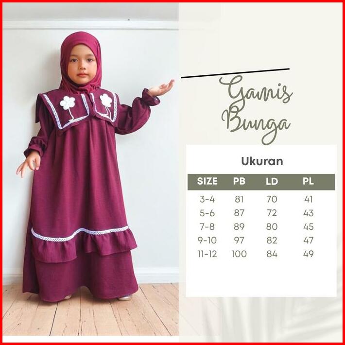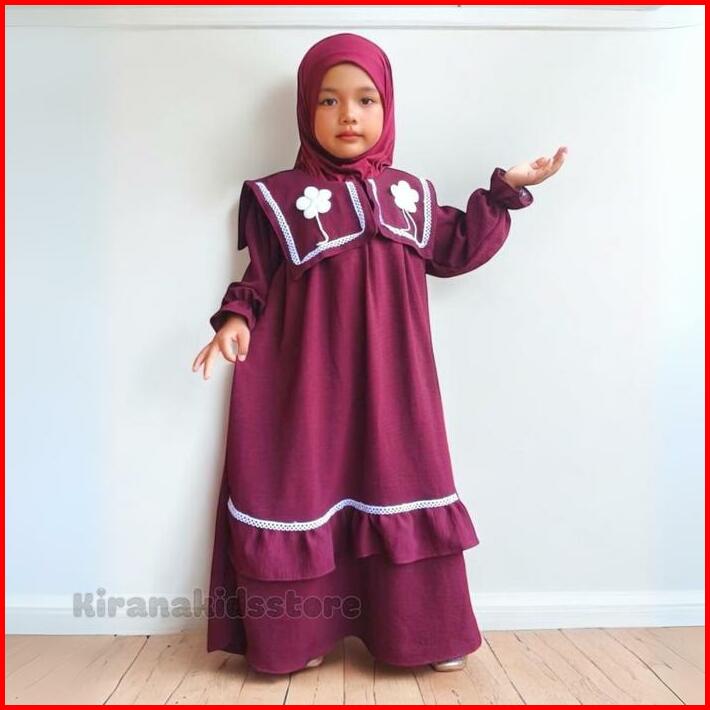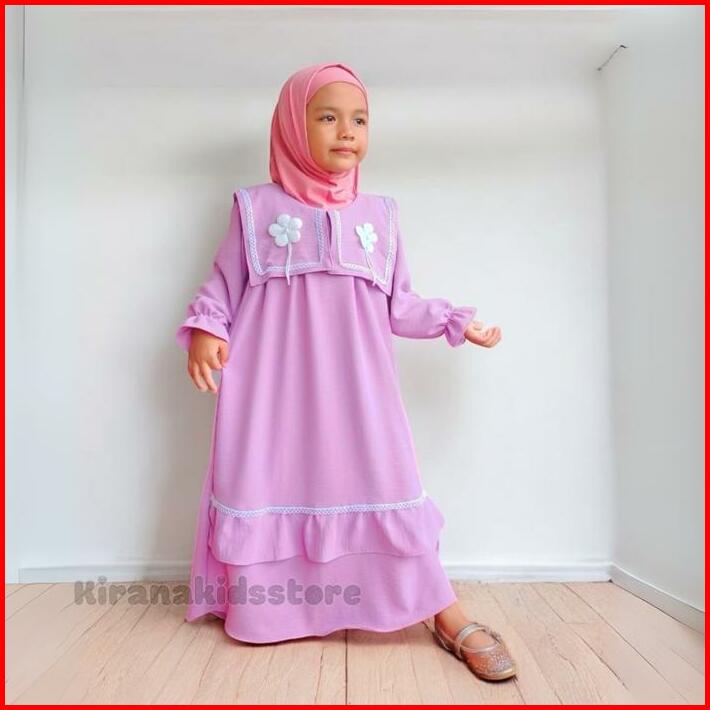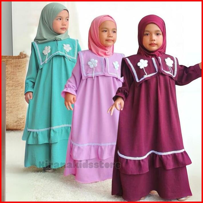 Baju Gamis Anak Perempuan Motif Renda Bunga Usia 3-12 Tahun Muslim