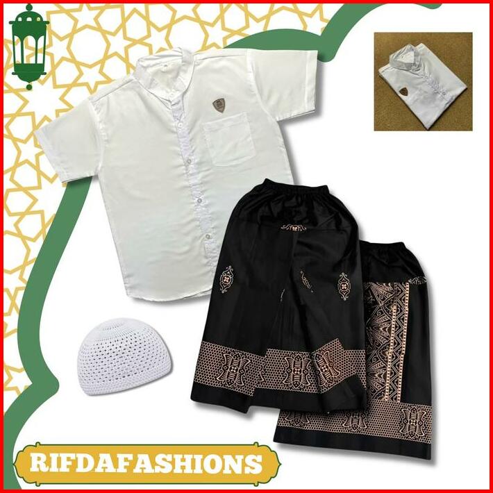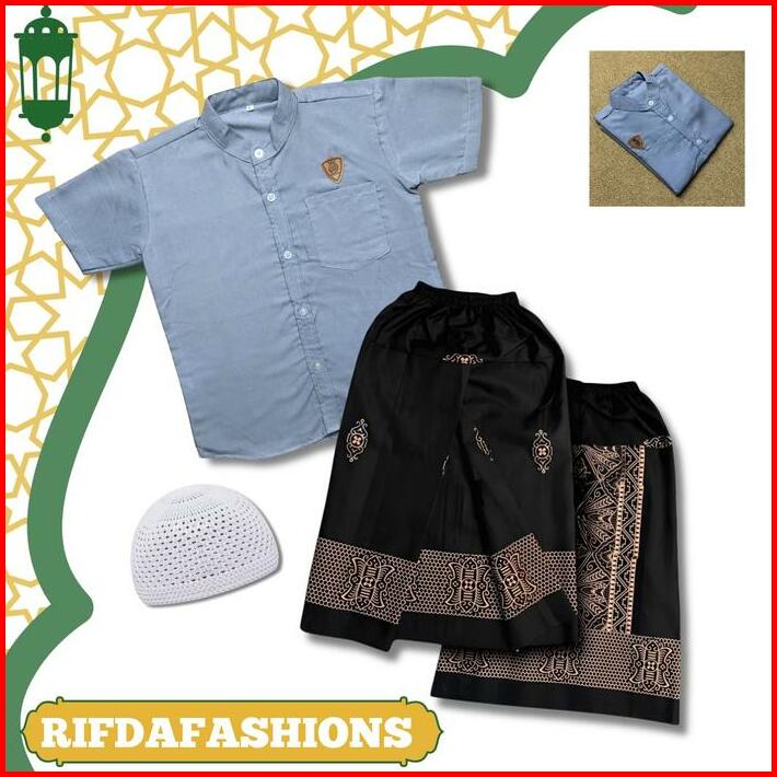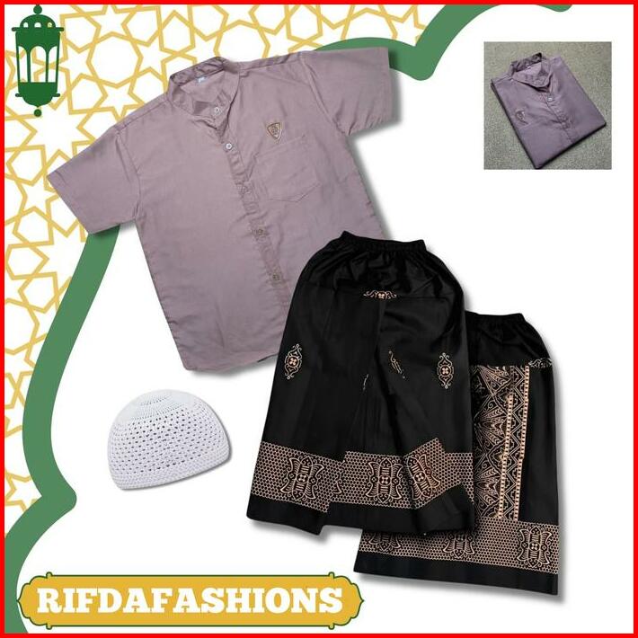 Paket Komplit Sarung Koko Peci Anak Usia 3-10 Tahun Muslim Lebaran Baju Setelan