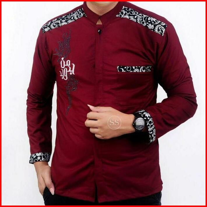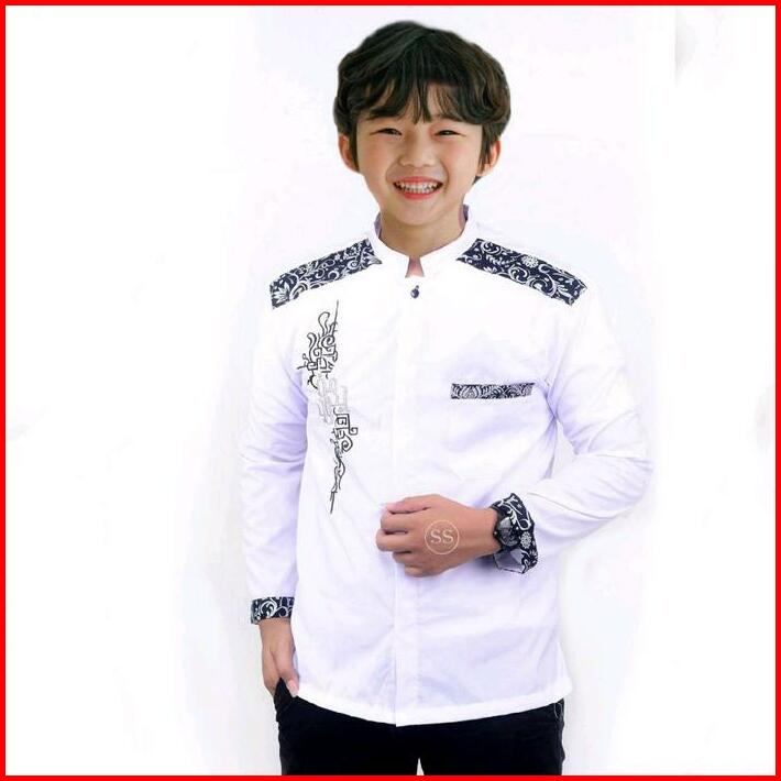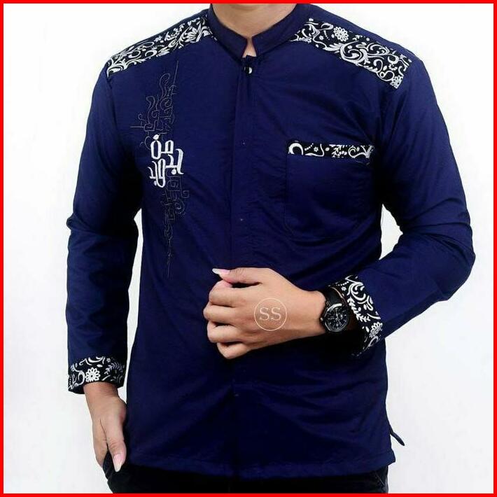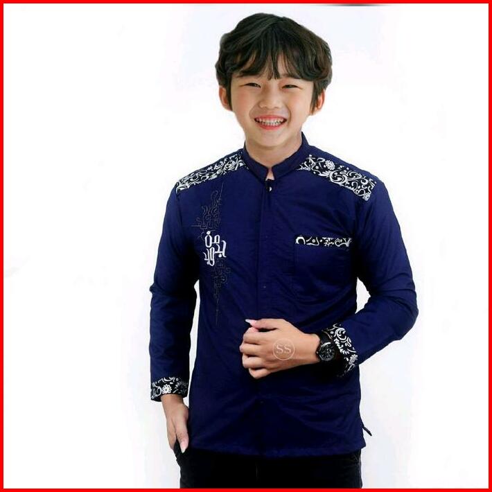 Baju Koko Anak Tanggung Sd Smp Motif Manjada Batik Bordir Muslim Kombinasi Katun Panjang Navy Setelan Atasan Remaja