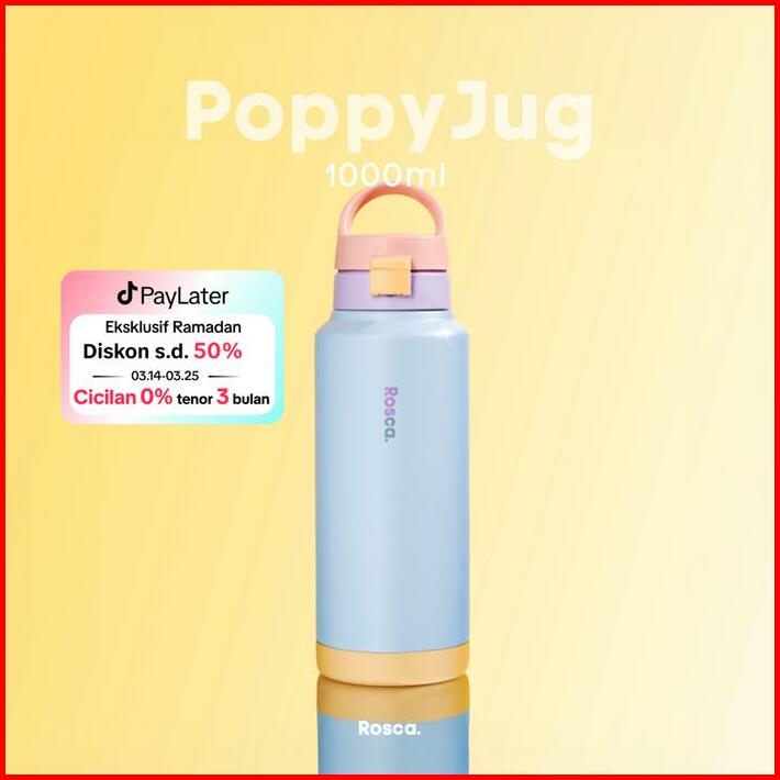 Rosca Poppyjug Tumbler Stainless 1 Liter Botol Minum 1 Liter Tahan Panas Dingin Portable Stainless Steel Tumblr