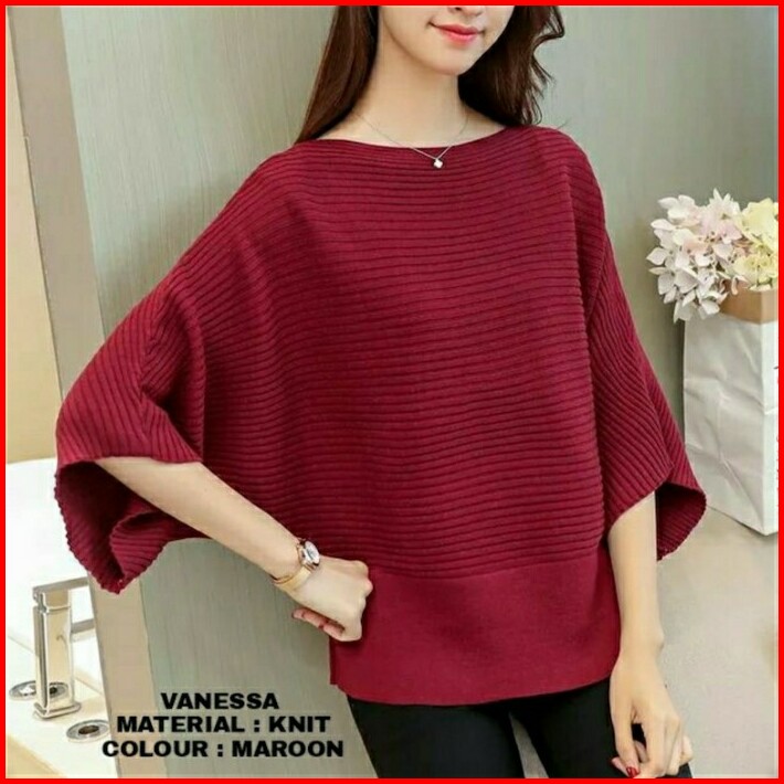 Cl Blouse Batwing Vanessa Top Rajut Vanessa Atasan Xxl Xxxl Jumbo