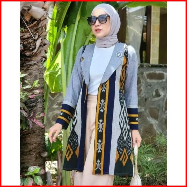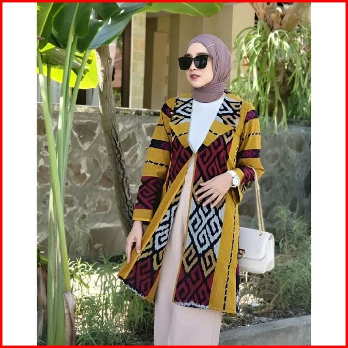 Blazer Tenun Baju Kerja Outer Wanita Lengan Panjang Dress Katun Muslim Batik