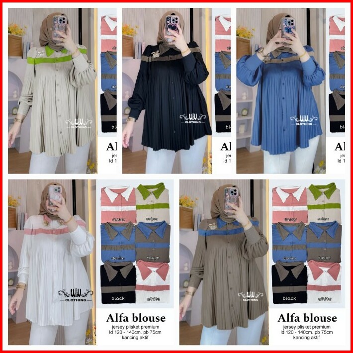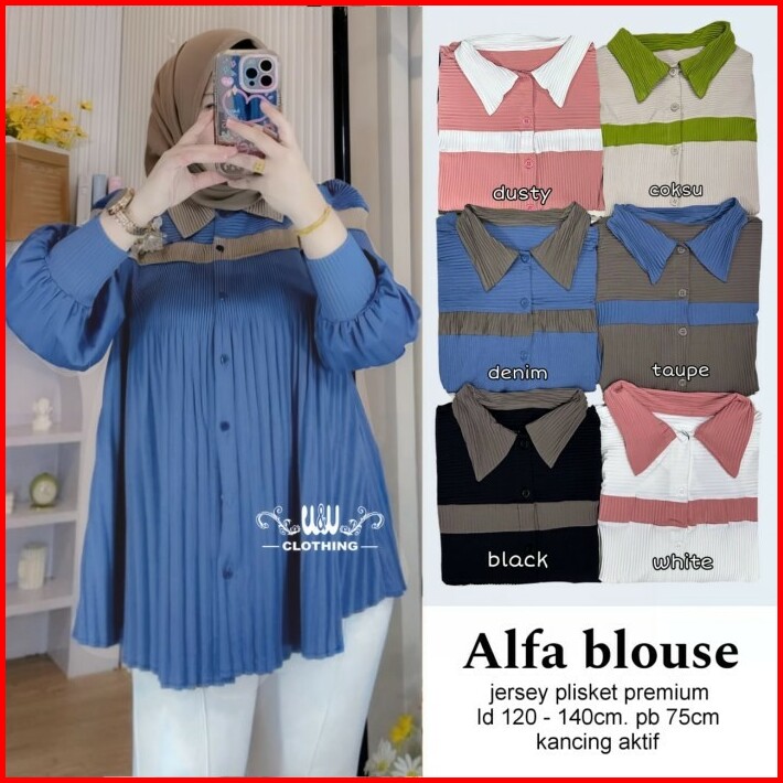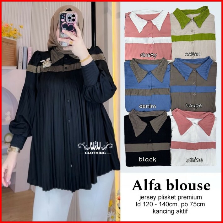 Alfa Blouse Wanita Jumbo Fit Xxxl Ld 120-140 Hitam Jersey Plisket Premium Hq Blouse Wanita Oversize Busui Realpict Origi
