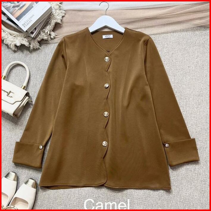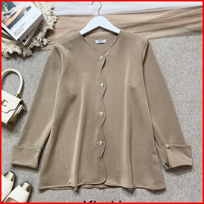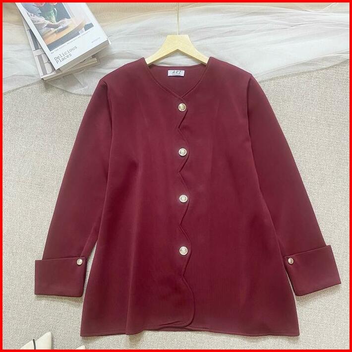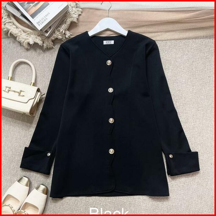 Clovy Blazer Korean Blazer Fit Panjang Scuba Wanita Basic Outer Kancing