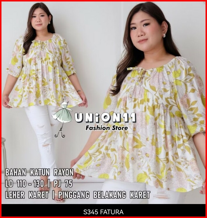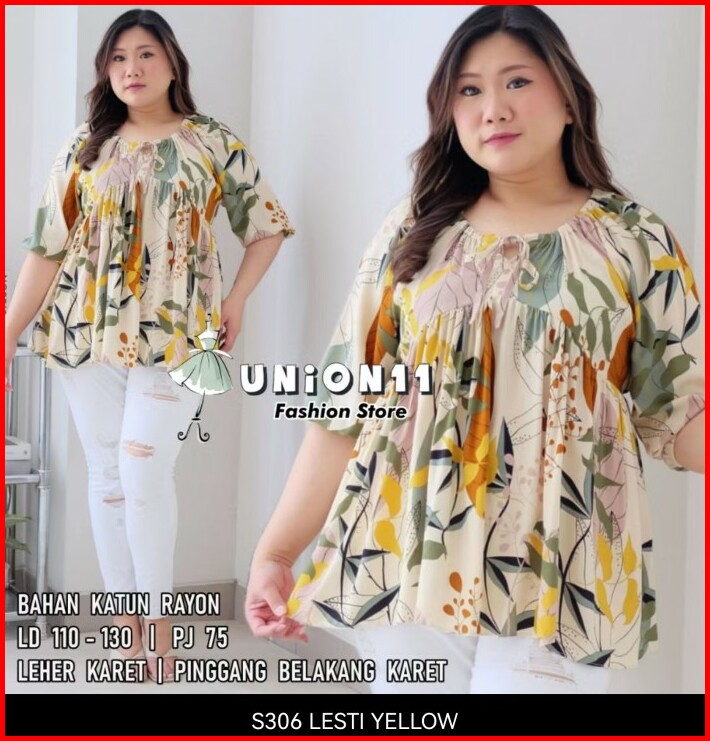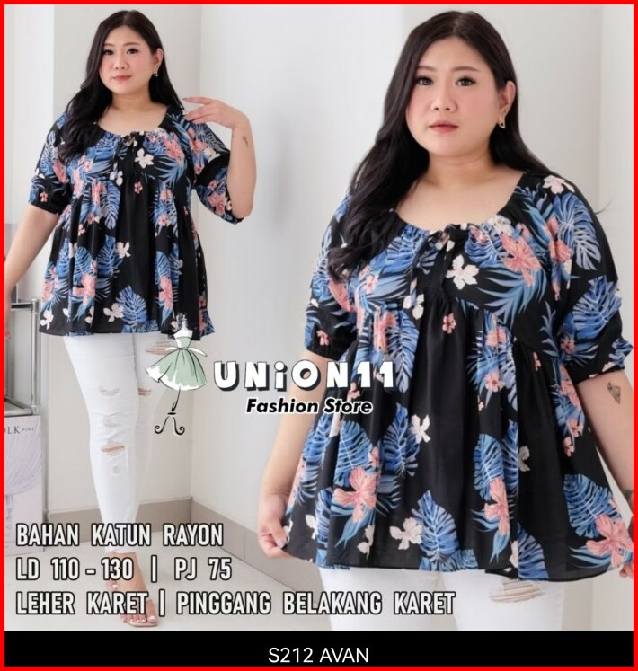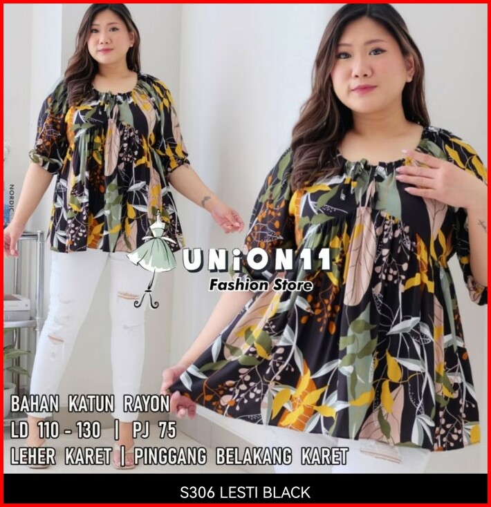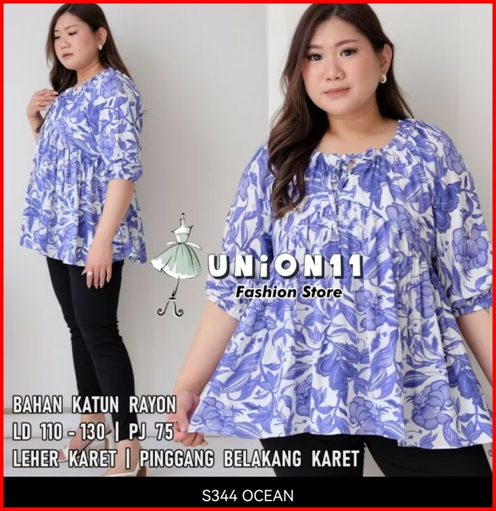 Jumbo Blouse Wanita Katun Rayon Leher Karet Pinggang Karet Motif Bunga Ld 110-130